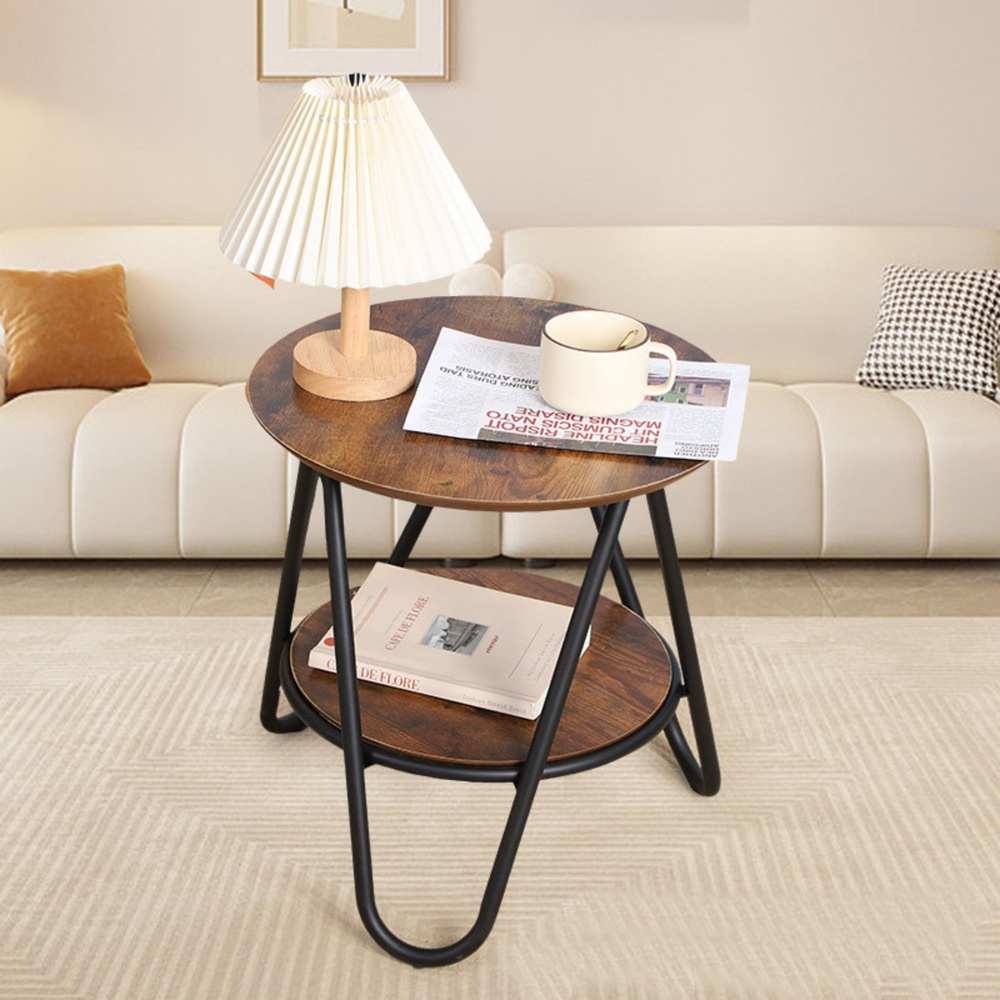 Ovaj okrugli stolić za kavu s policom kombinira estetsku privlačnost s praktičnošću. Njegova kompaktna veličina, stabilna konstrukcija i dodatna polica čine ga prikladnim za dnevne sobe, spavaće sobe i urede. Njegov moderan izgled i minimalistički oblik nadopunjuju razne stilove interijera, od industrijskog do skandinavskog.