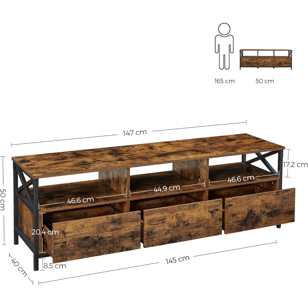 Vitrina je izrađena u rustikalnom stilu, tj. primjereno stilizirana da izgleda staro. Odgovarajuće dimenzije ormarića pružaju dovoljno mjesta za TV.