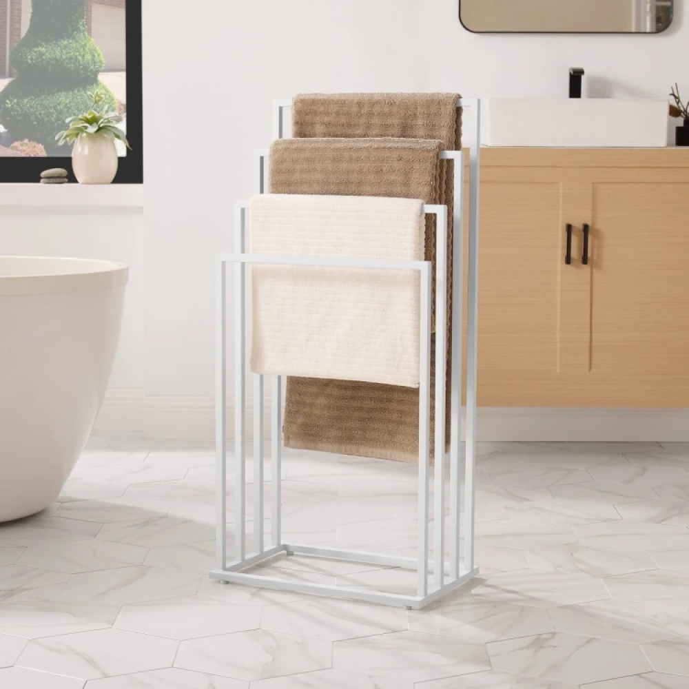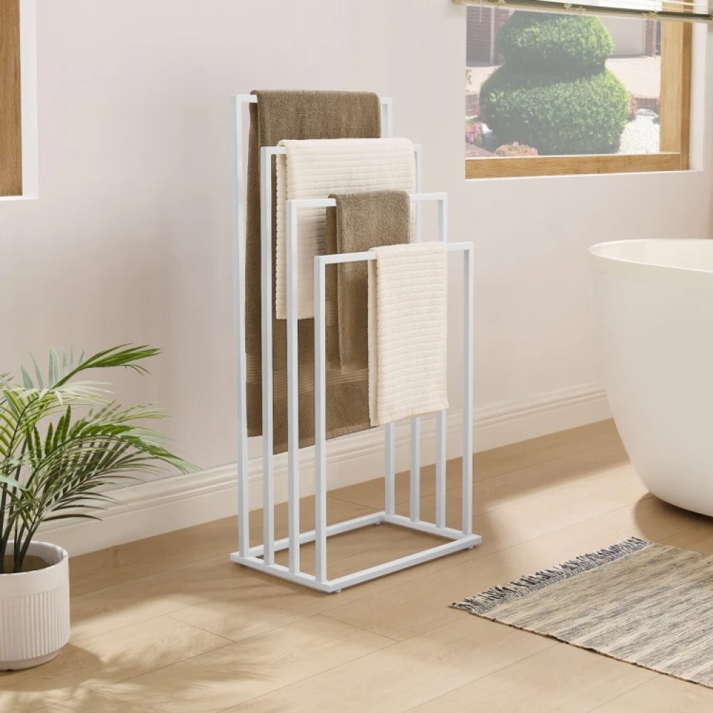 Samostojeći držač za ručnike unosi red i organizaciju ne samo u kupaonicu već i u praonicu rublja. Ovaj praktični komad namještaja olakšava pristup ručnicima i njihovo sušenje.