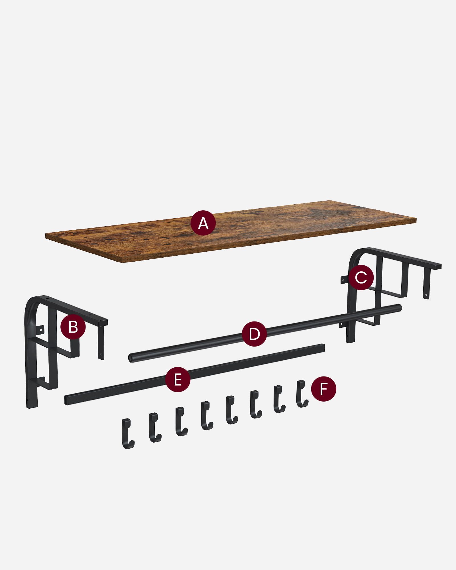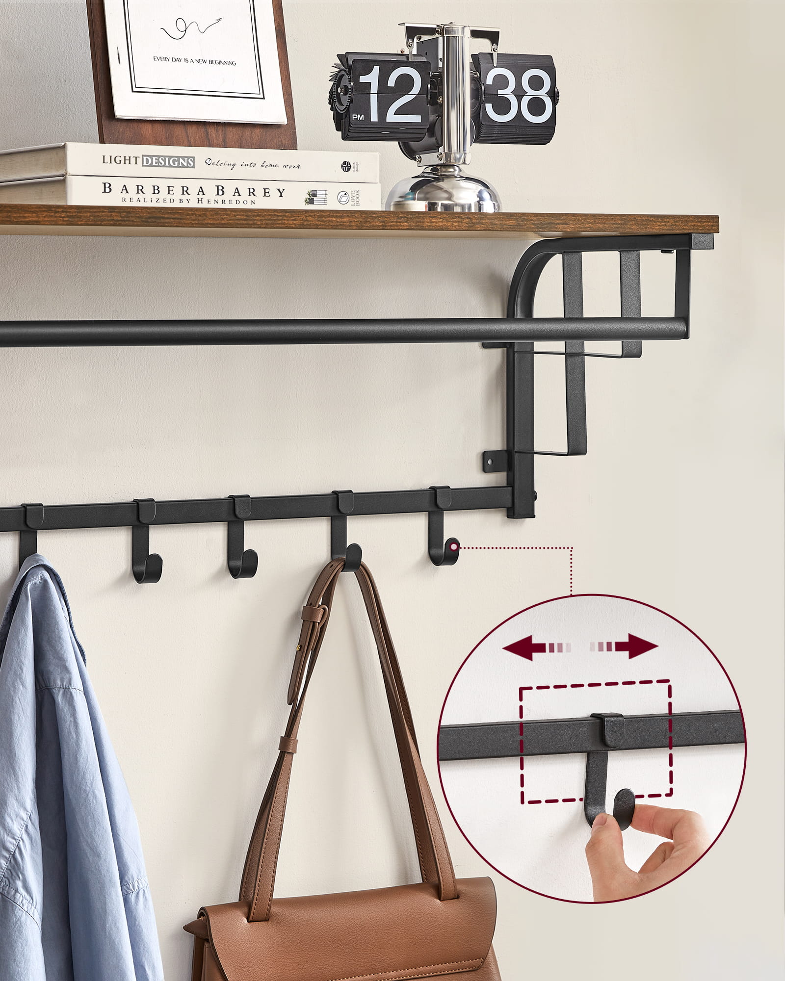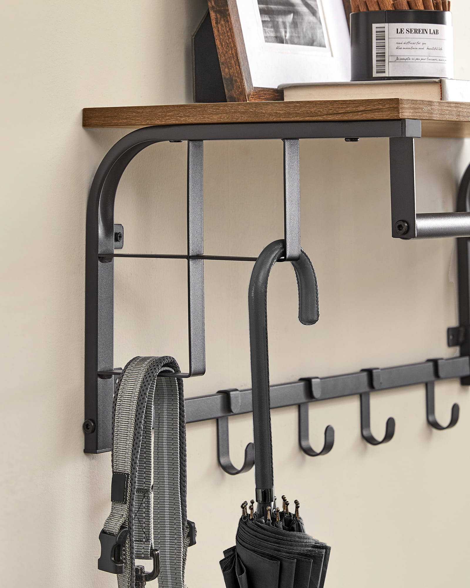 Ovaj proizvod koji štedi prostor ima stabilnu policu na koju možemo staviti cvijeće u saksiji, kišobrane, ruksake, šešire, kape ili jednostavno postaviti svoje lijepo uokvirene fotografije. Uz to, proizvod je opremljen s 5 kukica za odlaganje kaputa, jakni, torbi ili ključeva te stabilnom šipkom na koju možemo objesiti jakne i kapute postavljene na vješalicu za odjeću.