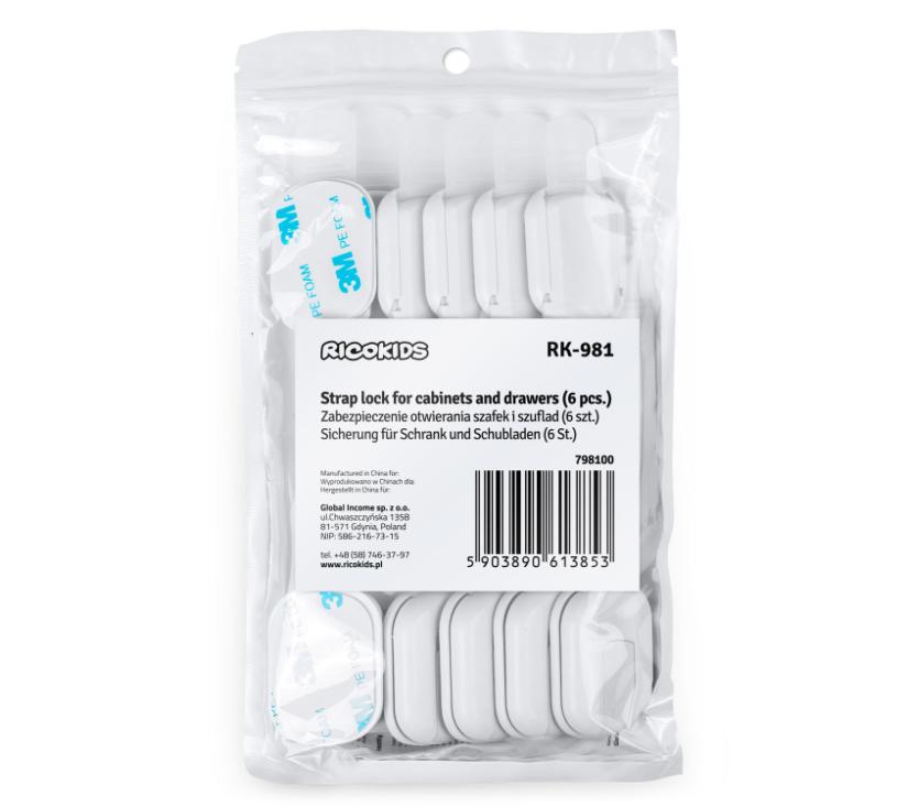Ricokids zaštita od otvaranja ormarića – 6 kom. bijeli