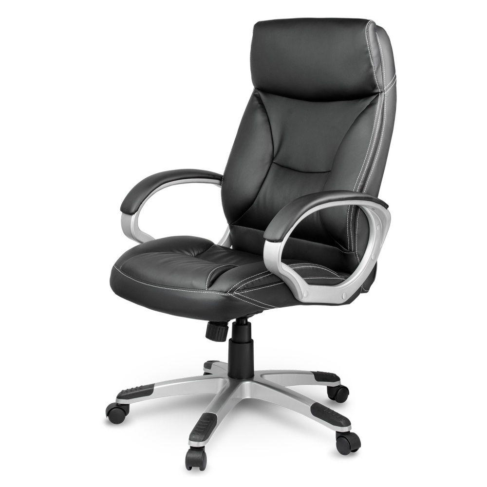 Elegantni i moderni dizajn stolice nadopunjuje svaki uredski prostor. Silueta stolice dizajnirana je tako da uskladi njezin lagani oblik s čvrstim linijama, dajući joj profesionalni karakter. Estetsku privlačnost nadopunjuju bijeli šavovi, stvarajući ugodan kontrast s crnom presvlakom od eko kože.