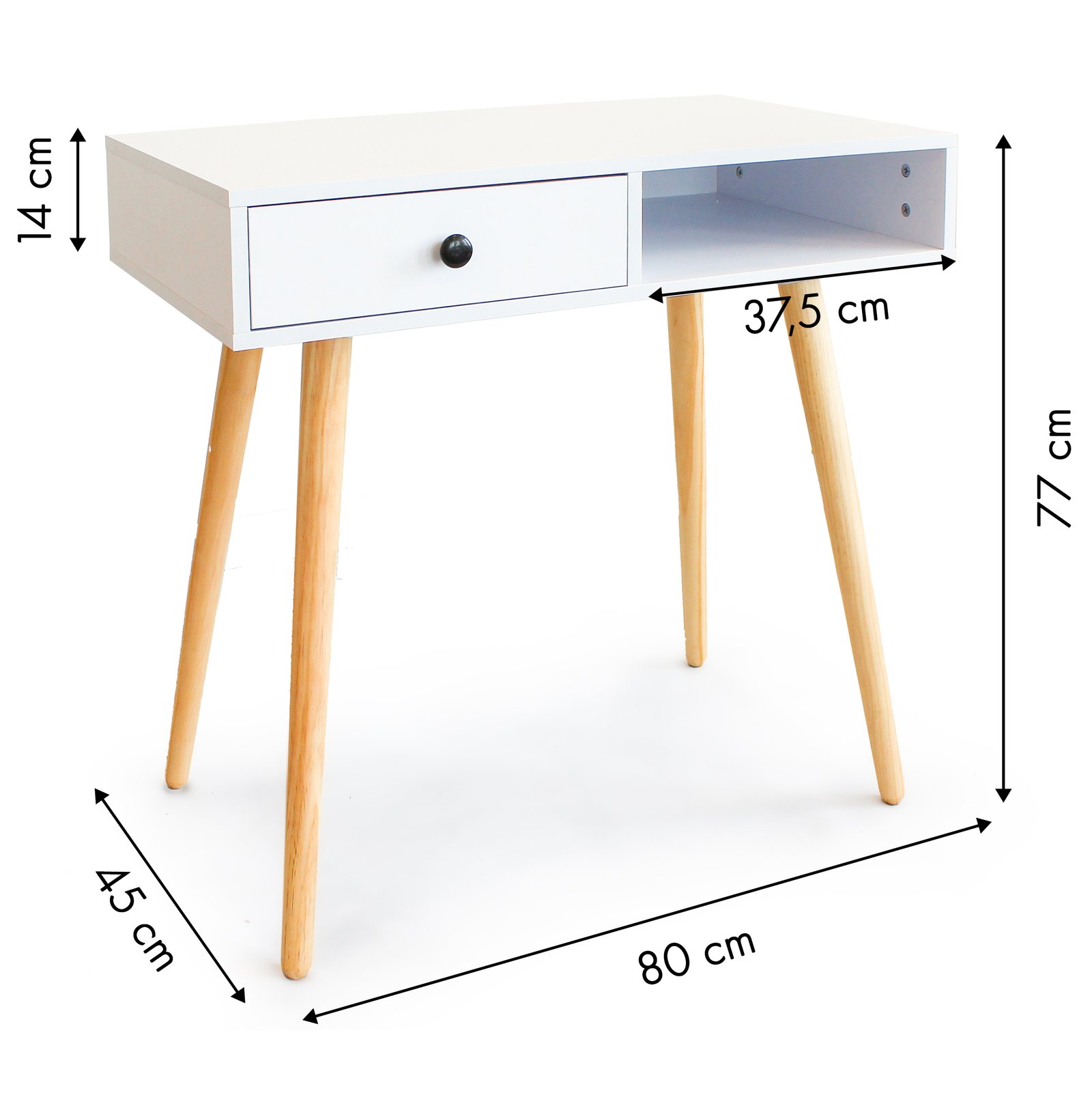 Za držanje kozmetike, uredskog pribora i drugih sitnica pod lakom kontrolom, stol ima veliku ladicu i veliki pretinac u koji može stati čak i sklopljeno prijenosno računalo. Prilikom sastavljanja ormarića možete odlučiti s koje strane želite postaviti ladicu na otvaranje, a s koje strane policu za priručne predmete.