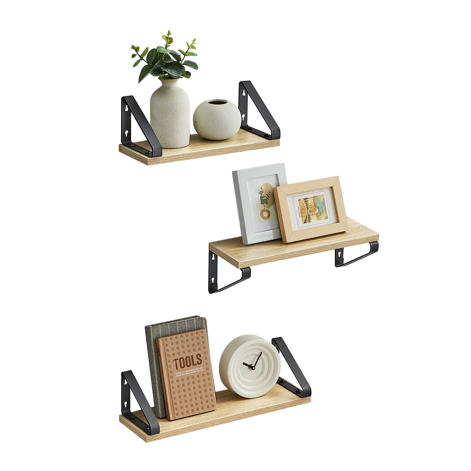 Elegantne police u sonoma boji bit će korisne u dnevnoj sobi, hodniku, spavaćoj sobi, dnevnom boravku, pa čak i u uredu. Predstavljene viseće zidne police unijet će red i urednost u vašu sobu. Ovaj praktični namještaj organizirat će vaše trofeje, lijepo uokvirene fotografije ili druge predmete kao što su svijeće, figurice, knjige ili cvijeće u saksiji.