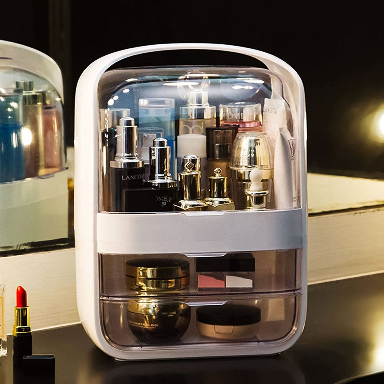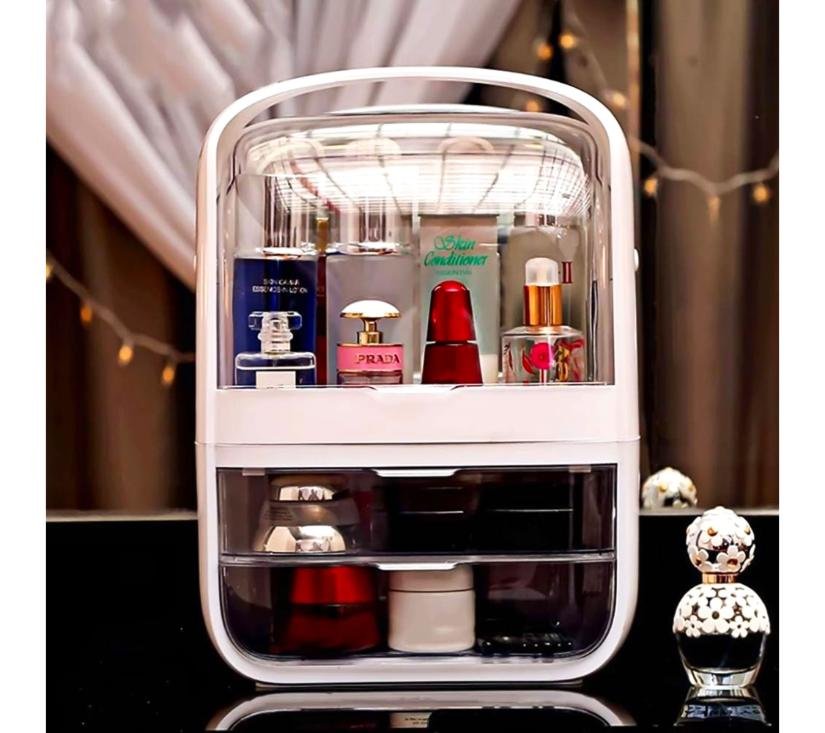 Kutija-organizator savršeno je mjesto za spremanje kozmetike i svega što vam treba biti pri ruci prilikom šminkanja. Funkcionalne ladice i prostrani prostor smjestit će veće kozmetičke i druge potrepštine bez kojih nijedna žena ne može. Organizator će vam omogućiti da organizirate kolekciju kozmetike i održavate uredan toaletni stolić ili kupaonicu.