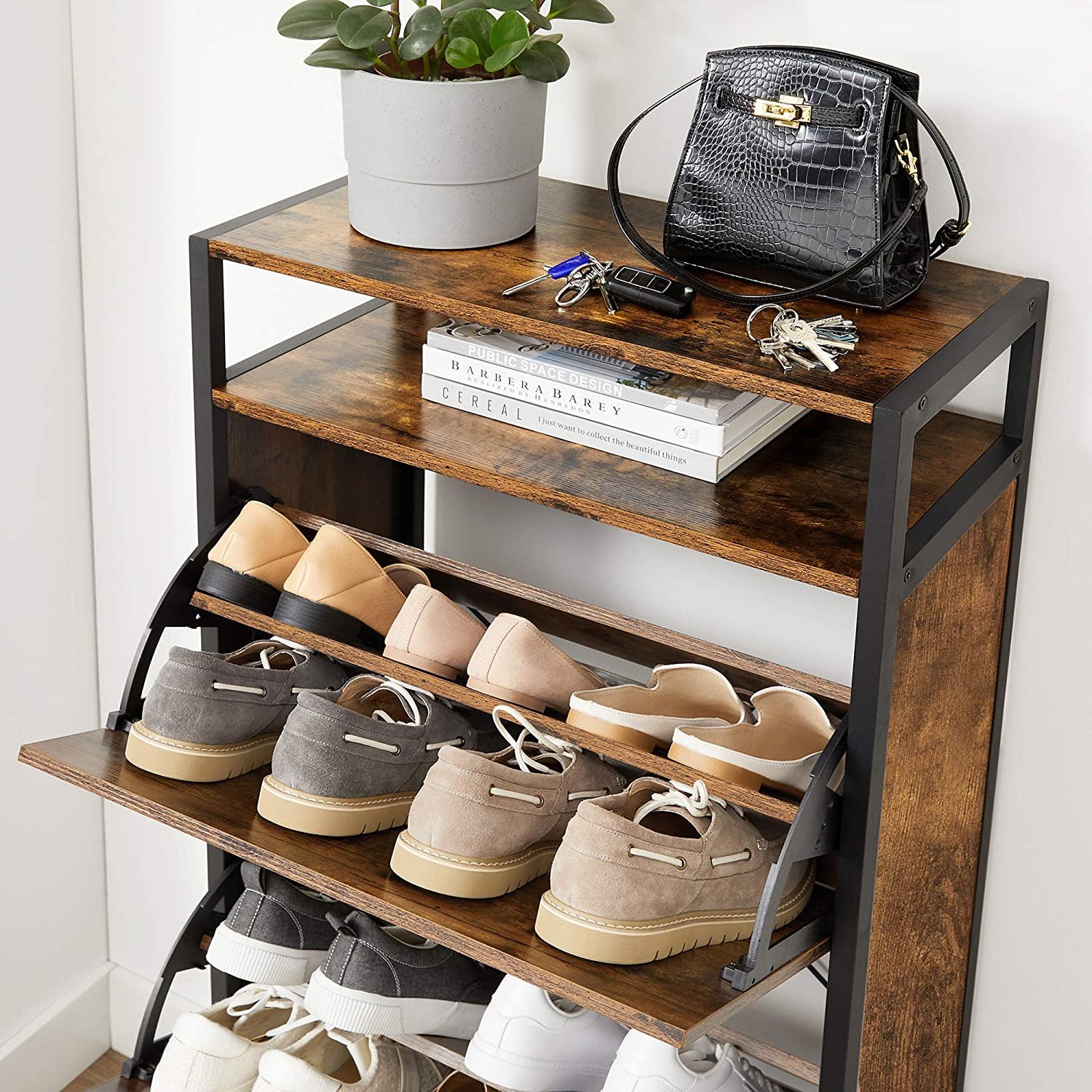 Rustikalni stalak za cipele vrlo je praktičan i elegantan komad namještaja koji se može koristiti u hodniku, hodniku, ured, recepcija, predvorje ili trgovina.