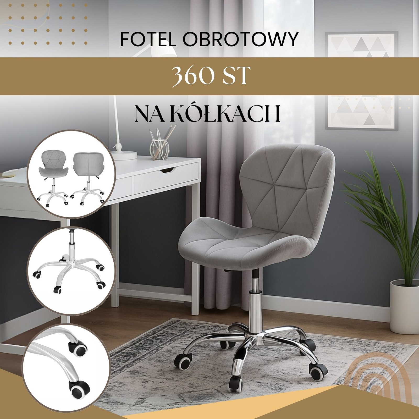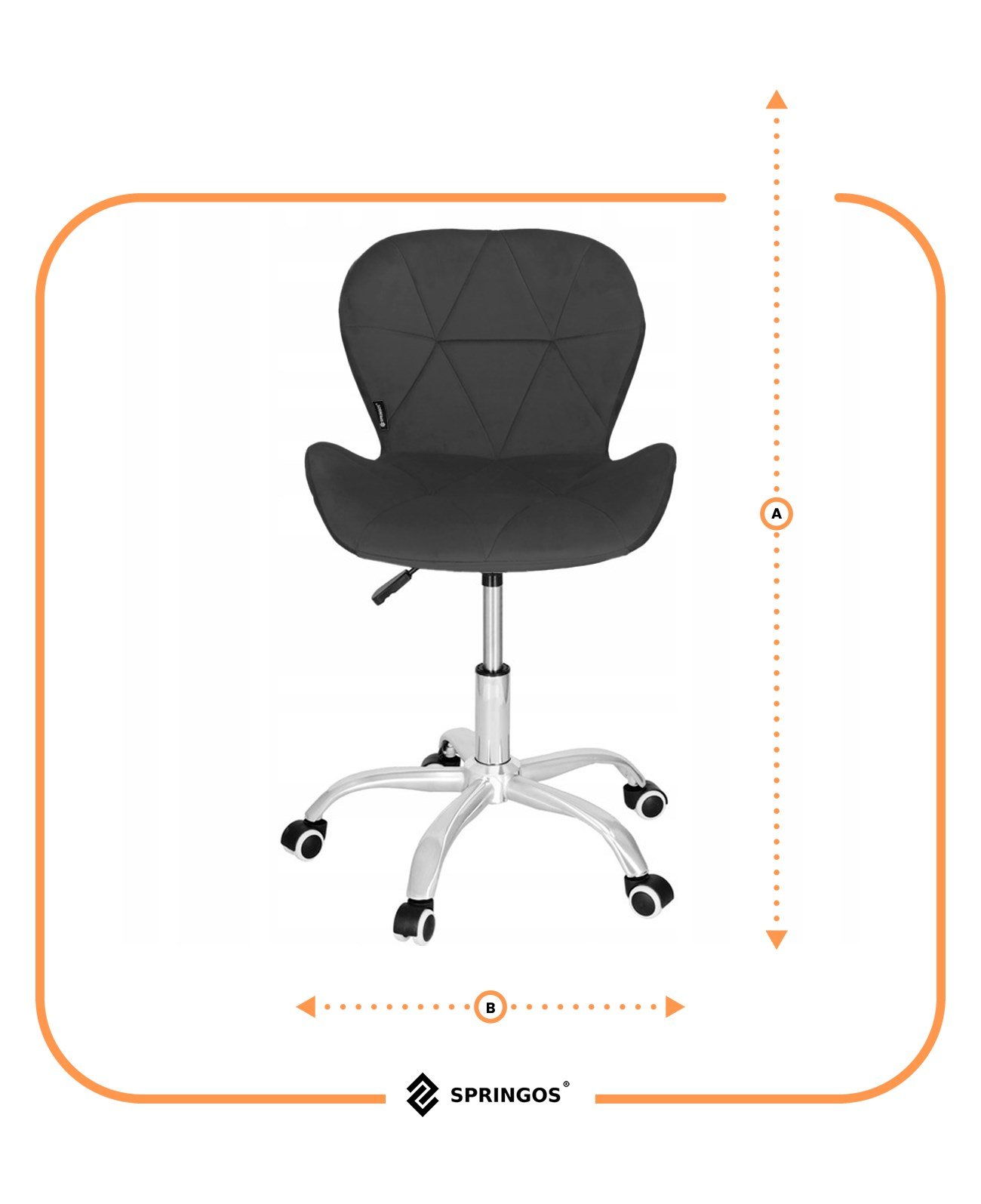 Uredska baršunasta stolica tamno siva, krom, crni elementi