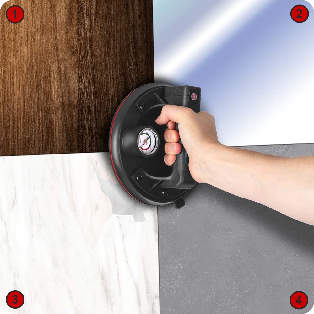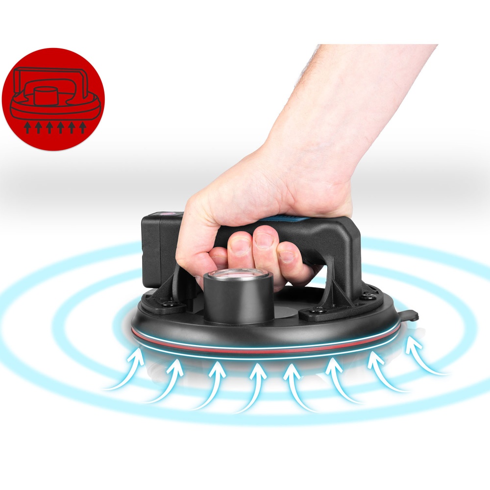 Profesionalna vakuumska čašica s podiznom silom do 200 kg, napajana litijevom baterijom od 2400 mAh. Brzo punjenje (samo 2 sata), do 8 sati rada s jednim punjenjem. Kompaktna, idealna za preciznu montažu i transport.