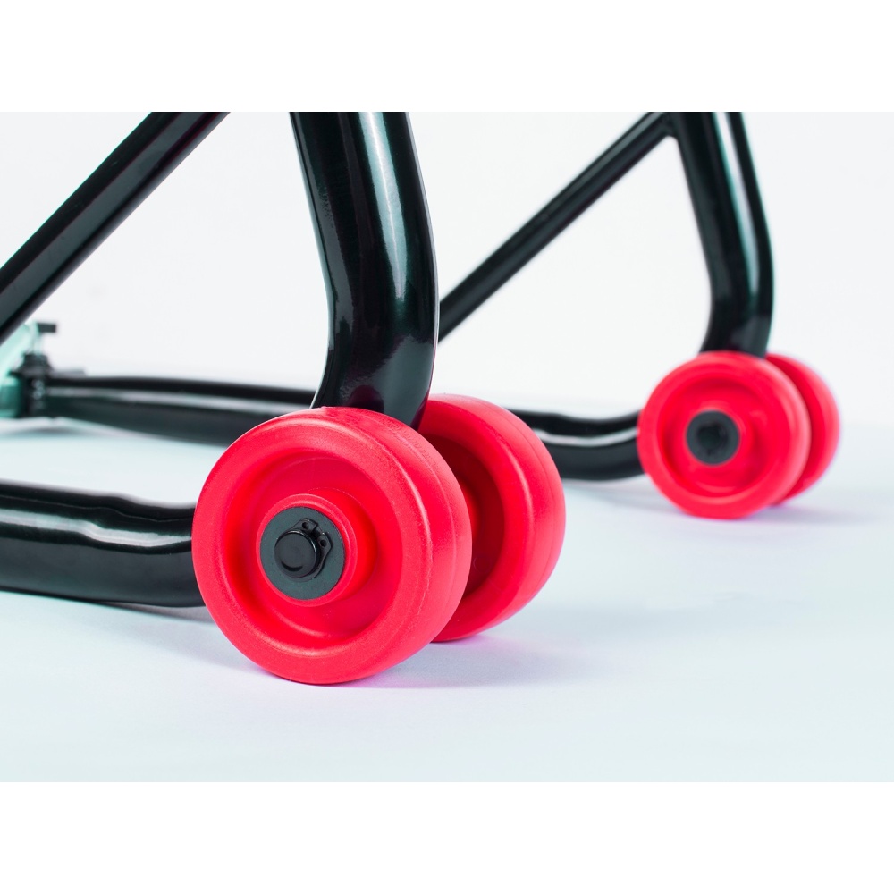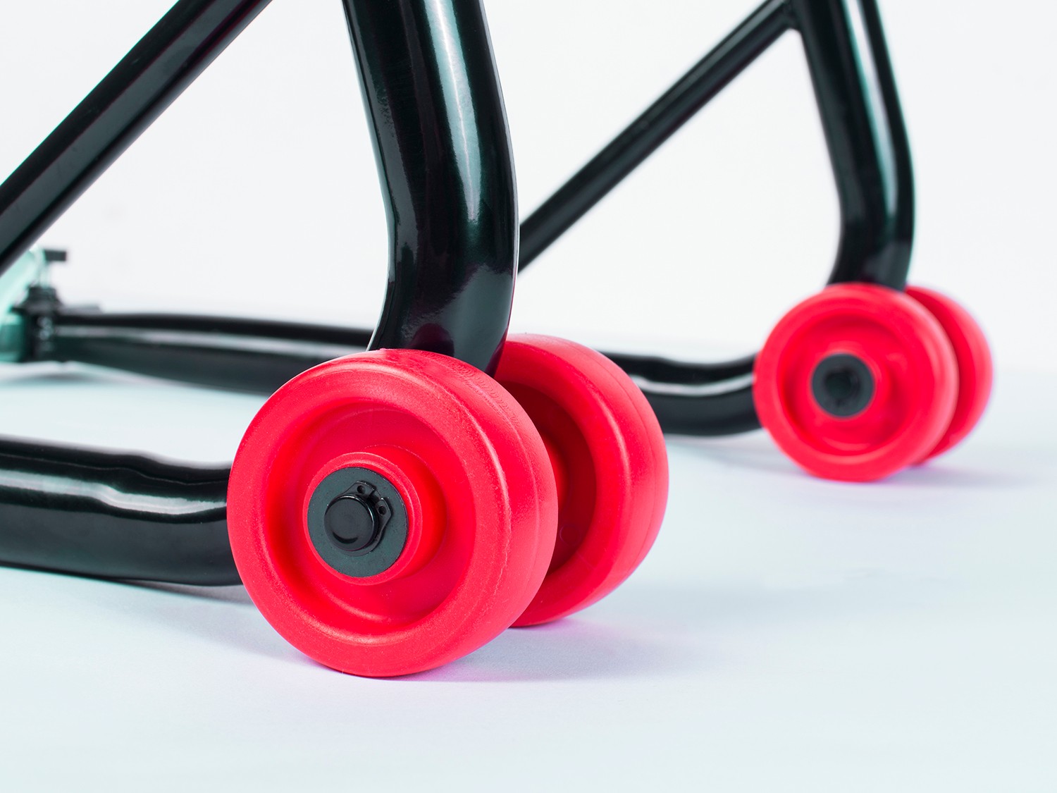 izrađen je od najkvalitetnijih materijala. Izrađen je od čeličnih cijevi s praškastim premazom promjera 32 mm. Može se prilagoditi individualnoj širini vašeg motocikla. Svi dijelovi zaštićeni su od korozije praškastim premazom ili pocinčavanjem. Kotači su izrađeni od visokokvalitetnog kompozita.