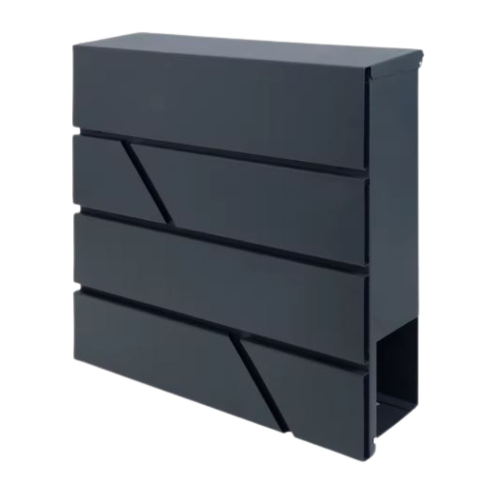 Ovaj moderni antracitni poštanski sandučić praktično je i elegantno rješenje za svaki dom ili ured. Izrađen od visokokvalitetnog, praškasto premazanog pocinčanog nehrđajućeg čelika, otporan je na vremenske uvjete, koroziju i mehanička oštećenja. Njegov minimalistički dizajn s geometrijskim rezovima daje sandučiću moderan karakter, savršeno se stapajući s pročeljem zgrade.
