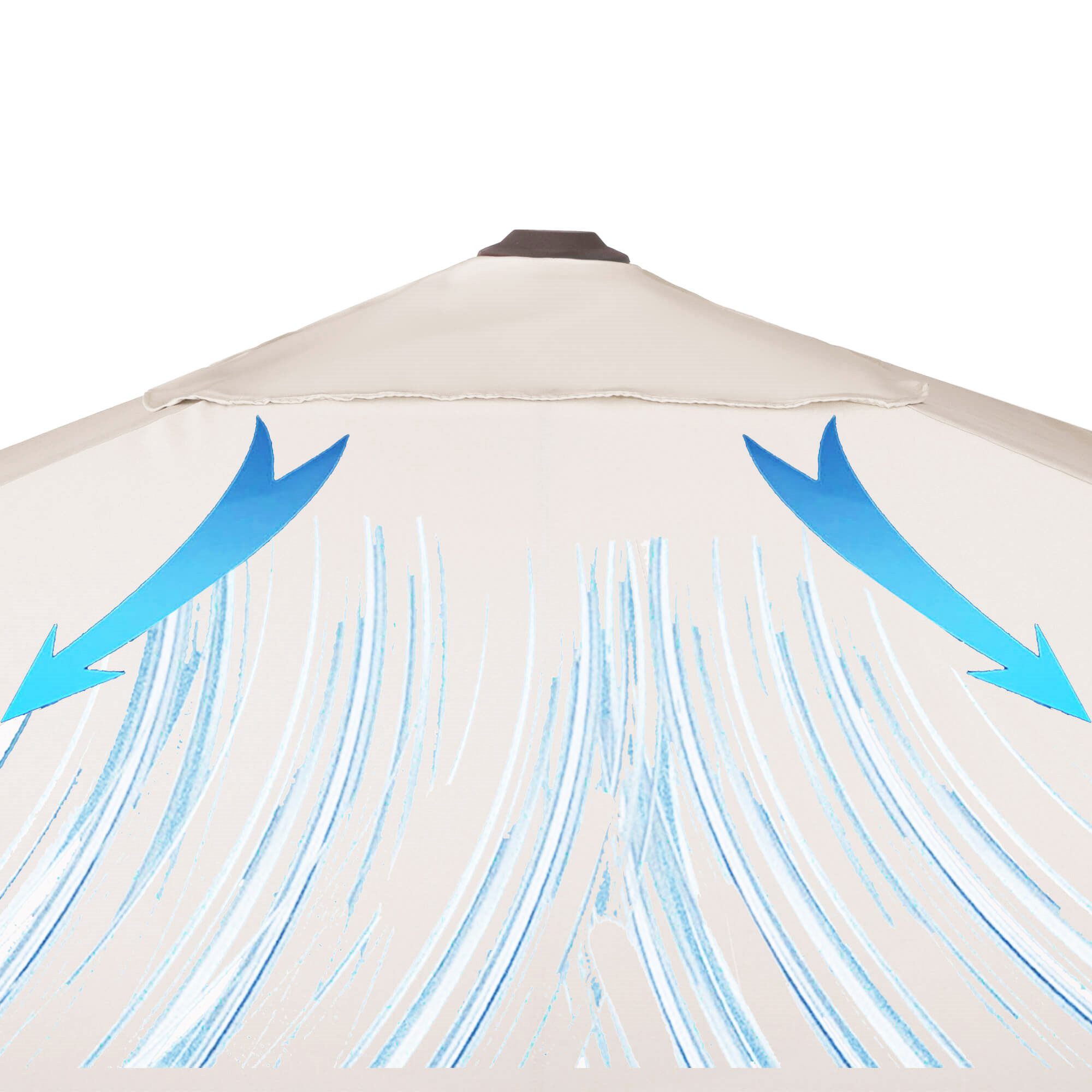 Pri jakim udarima vjetra preporučljivo je sklopiti kišobran zbog veličine nadstrešnice i sigurnosti povezane s njom.