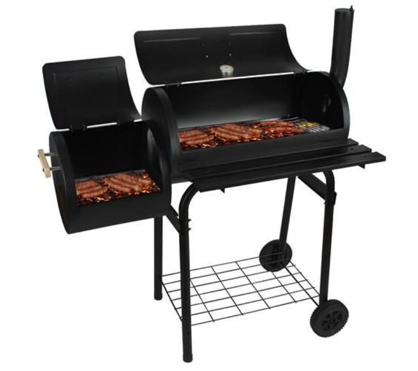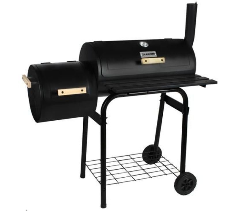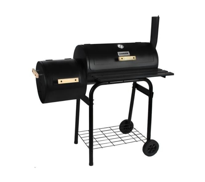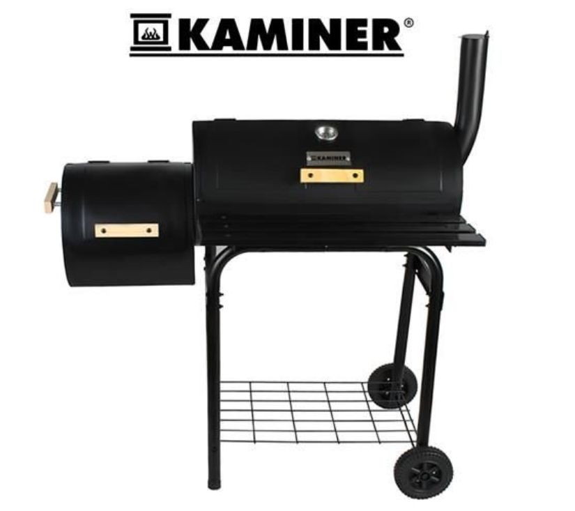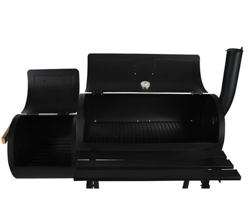 Kotači i ručka za jednostavno prenošenje roštilja. Roštilj s dvostrukom funkcijom ima dva odjeljka koji se mogu koristiti zasebno. Dimnjak osigurava savršenu cirkulaciju zraka (ima zaklopku koja se može zatvoriti). Dvije rešetke – za hranu i za ugljen, praktična prednja polica, npr. za tanjure ili pribor.