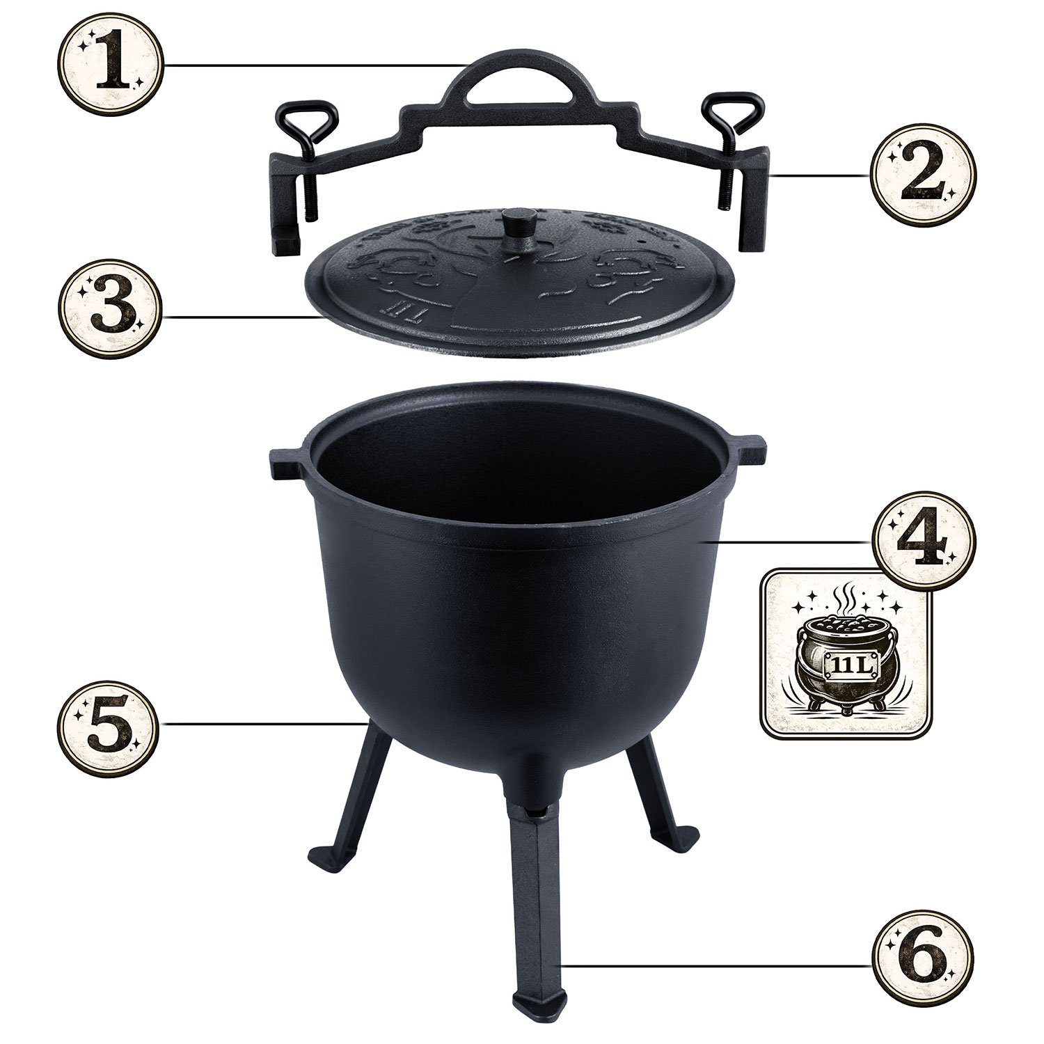 Kotao od lijevanog željeza od 11 l, lovački lonac za logorsku vatru + RECEPTI