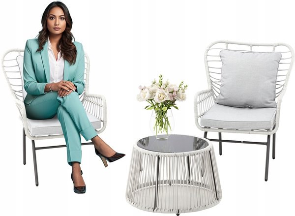 Ovaj moderni vrtni namještaj ima minimalistički dizajn koji će se savršeno uklopiti u svaki prostor. Elegantna kombinacija bijelog okvira i sivih jastuka daje eleganciju i moderan karakter. Savršeno za svakodnevno opuštanje, ispijanje kave ili romantičnu večeru na otvorenom.
