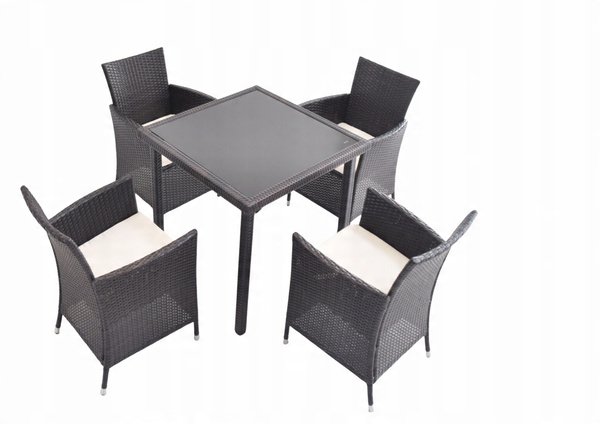 Vrtni set namještaja od ratana – smeđi, bež jastuci, stol 80×80 cm + 4 stolice