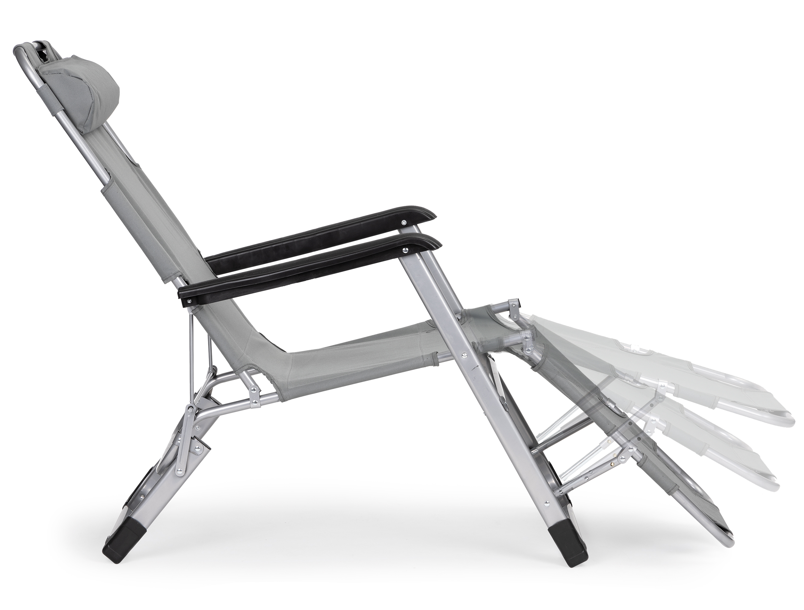 Ležaljka ima 3 stupnja podešavanja oslonca za noge, tako da je možete savršeno prilagoditi svojim potrebama. Možete odlučiti želite li više sjedeći položaj ili vam je udobnije sjediti ispruženih nogu.