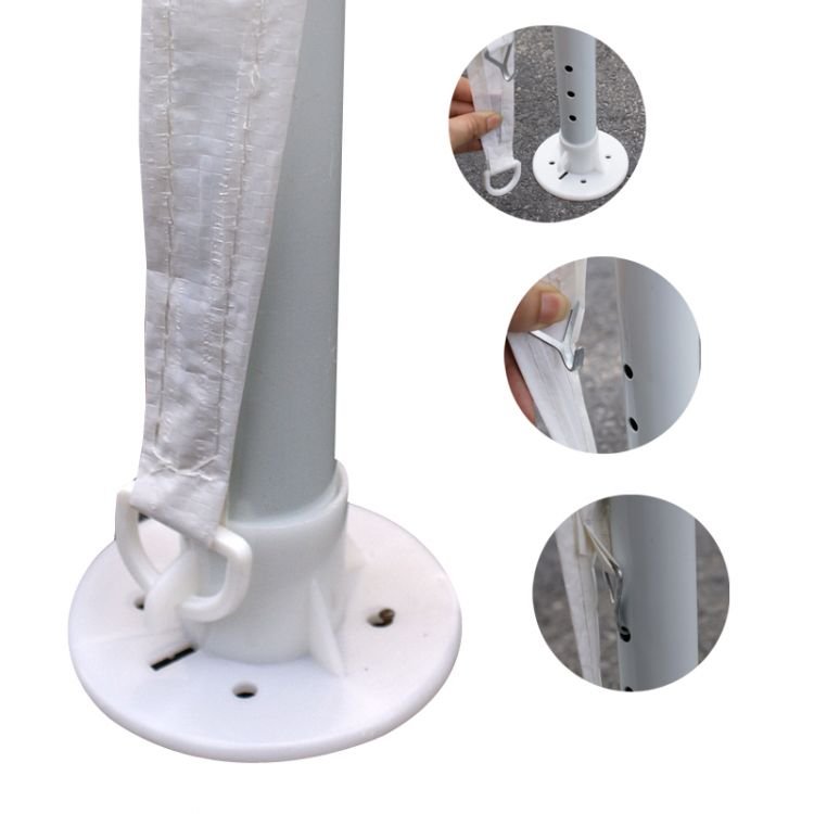 Okvir šatora izrađen je od debelih, praškasto obojenih metalnih cijevi promjera 32/25/25 mm , što osigurava stabilnost i otpornost na koroziju . Čvrsta konstrukcija jamči trajnost, čak i uz intenzivnu upotrebu. Svaka noga šatora pričvršćena je za tlo kolcima , što povećava njegovu stabilnost. Krov i zidovi izrađeni su od izdržljivog i vremenski otpornog polietilena od 100 g/m² u elegantnoj bijeloj boji.