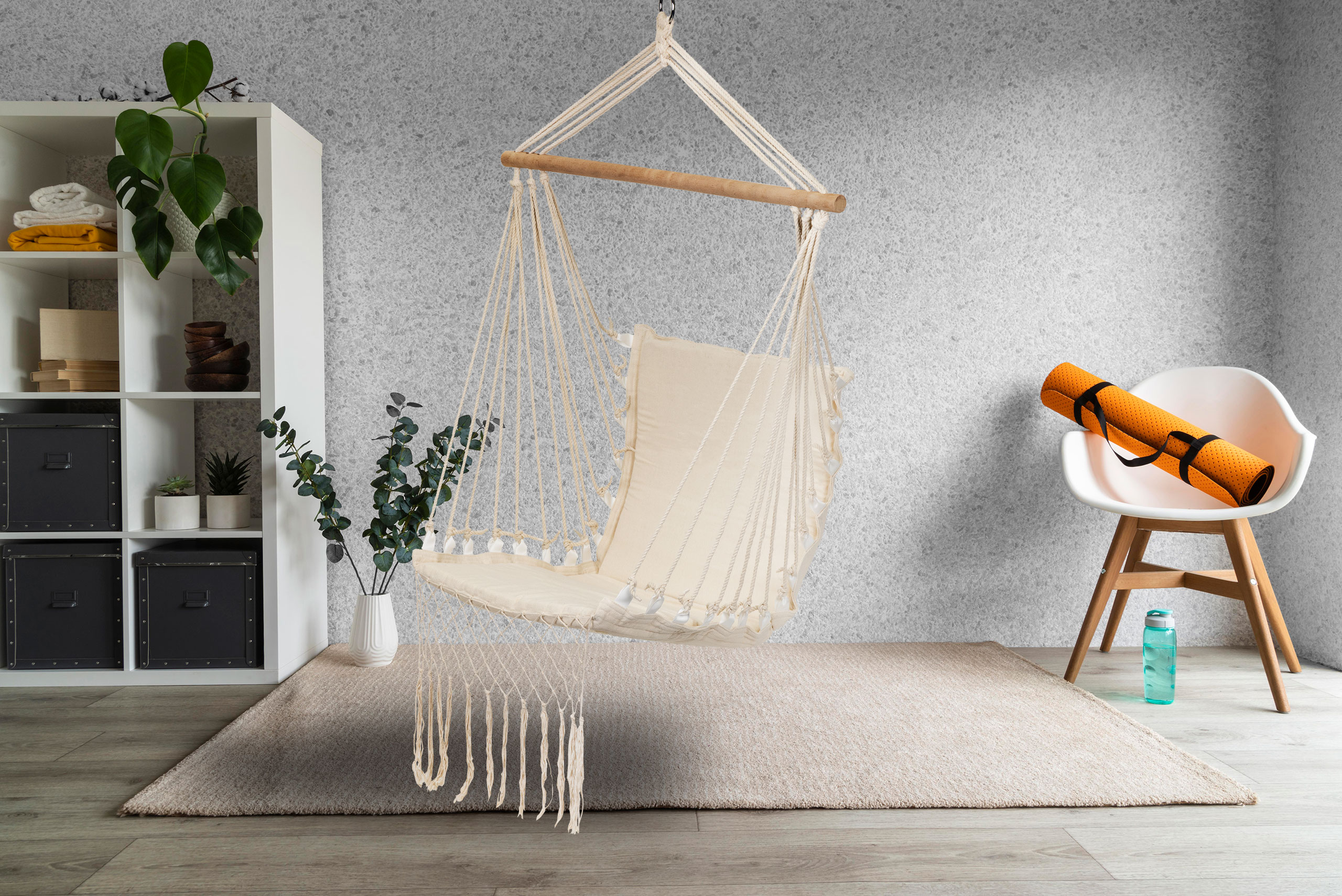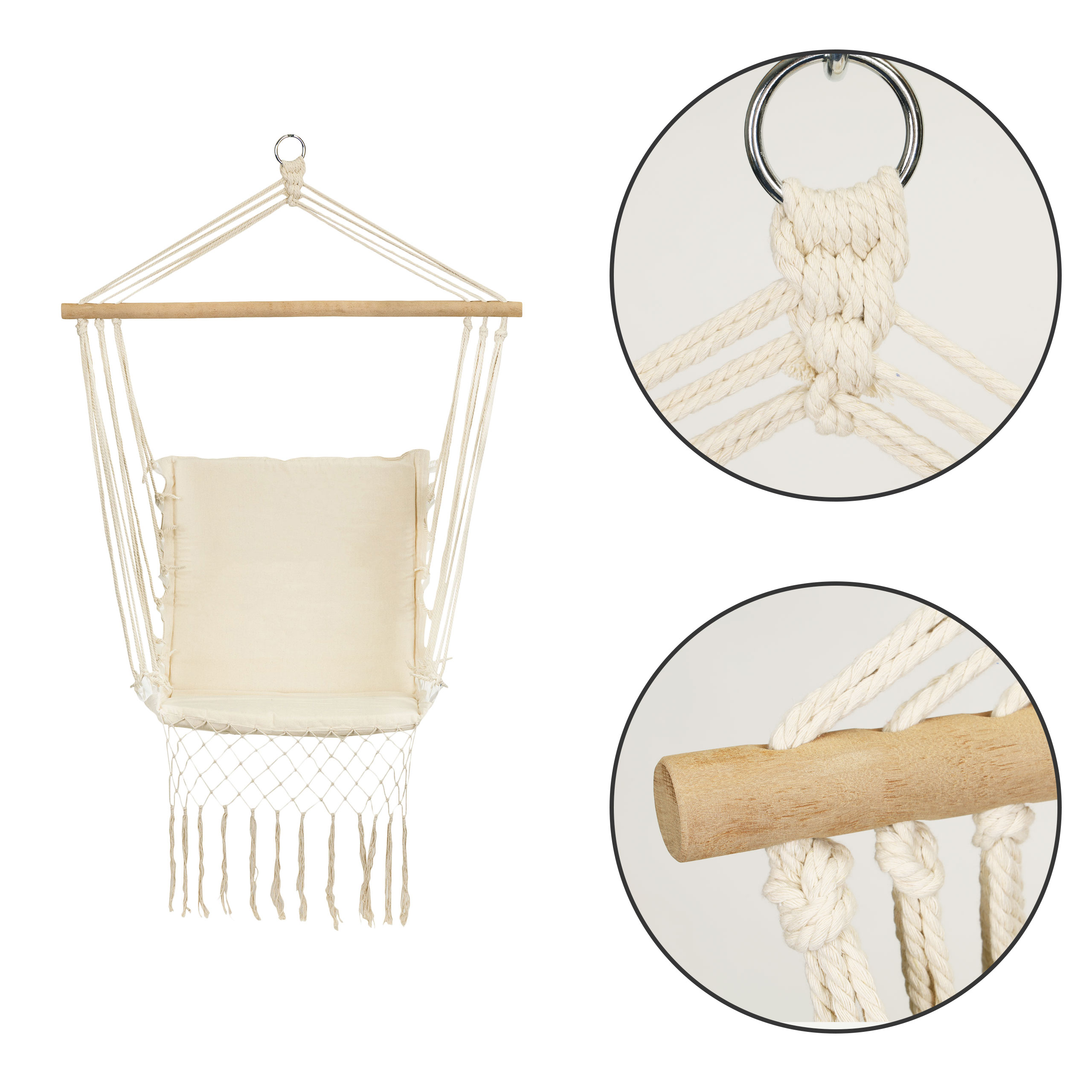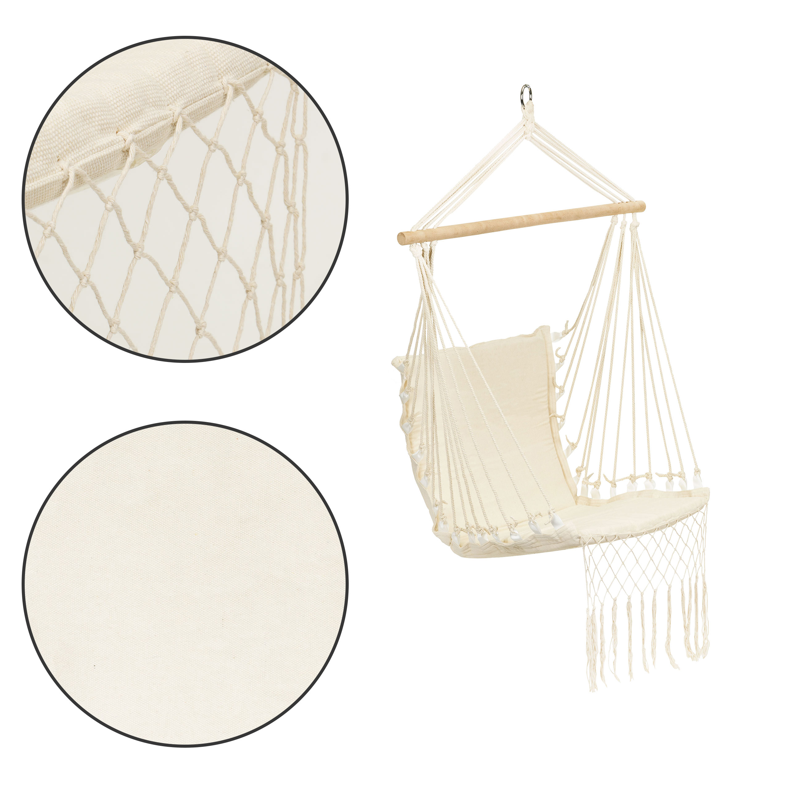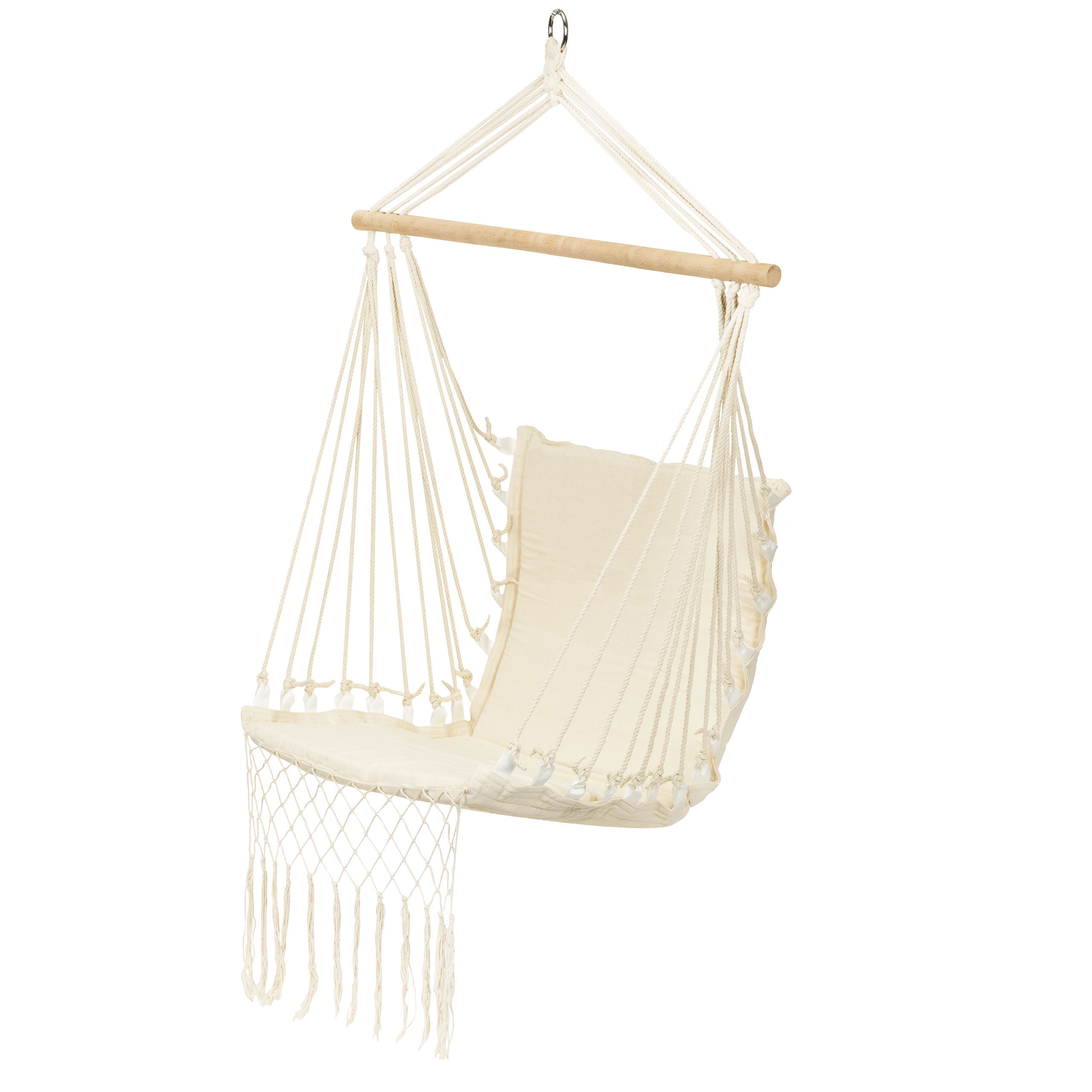 Izdržljiva navlaka izrađena je od pamuka koji je ugodan na dodir i pruža maksimalnu propusnost zraka. Navlaka se savršeno prilagođava tijelu tako da cijelo tijelo odmara . Sjedalo je završeno ukrasnim kićankama koje cijeloj ljuljački daju jedinstven karakter i čine je odličnom kako u vrtu tako i kod kuće