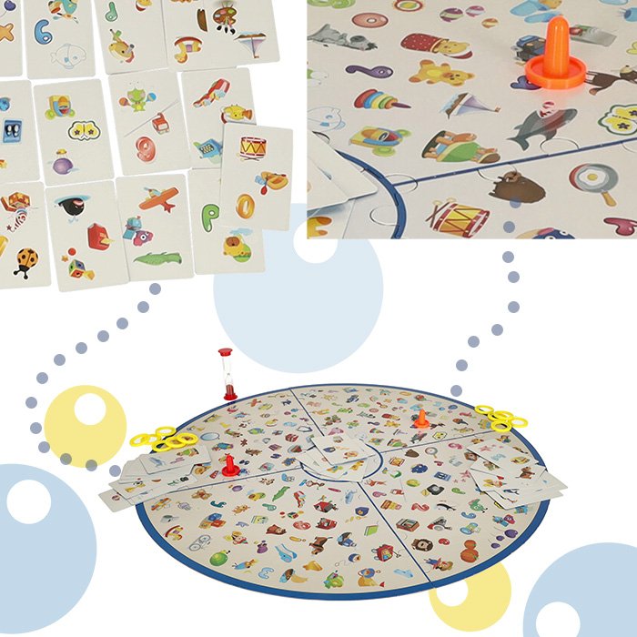 Zadatak igrača u svakoj rundi je pronaći slike s kartice stavljajući pokazivače u boji na njih. Zabilježite i proteklo vrijeme, koje se mjeri pješčanim satom.