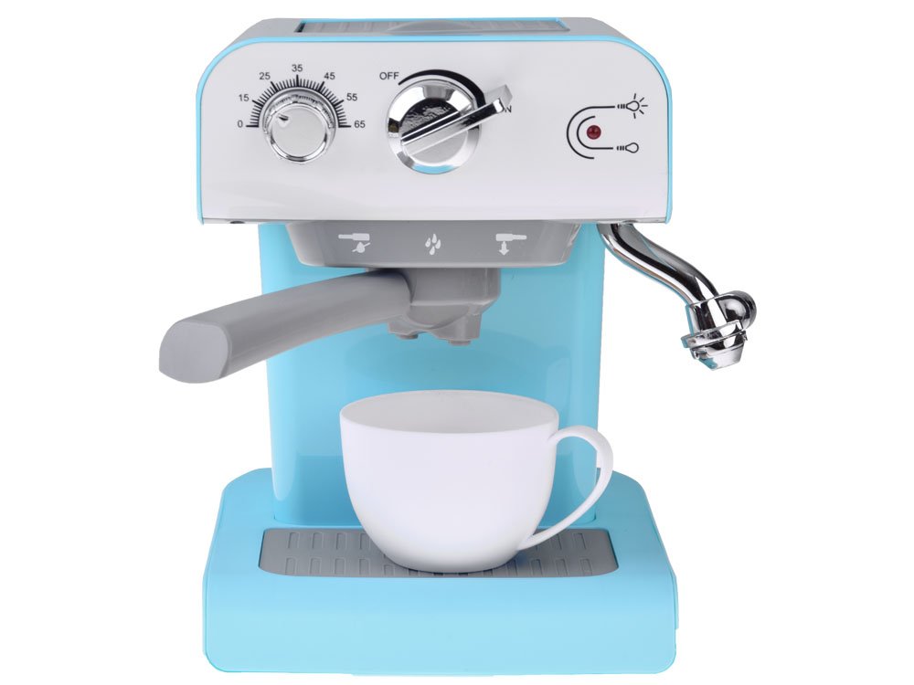 Aparat za kavu izrađen je vrlo realistično i sigurno će oduševiti svakog malog baristu. U gornjem dijelu aparata za kavu nalazi se zatvoreni spremnik za vodu. Stroj je također opremljen gumbima. Aktivira se okretanjem gumba u položaj ON. Nakon pokretanja čut ćete zvuk rada aparata za kavu i izlijevanja vode.