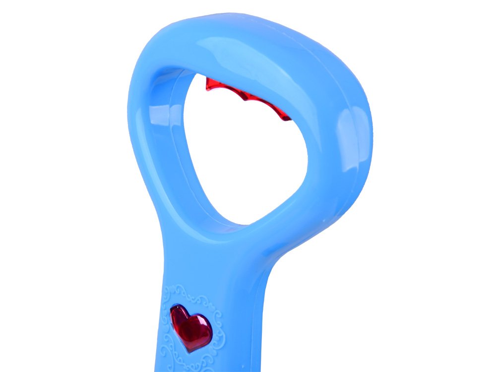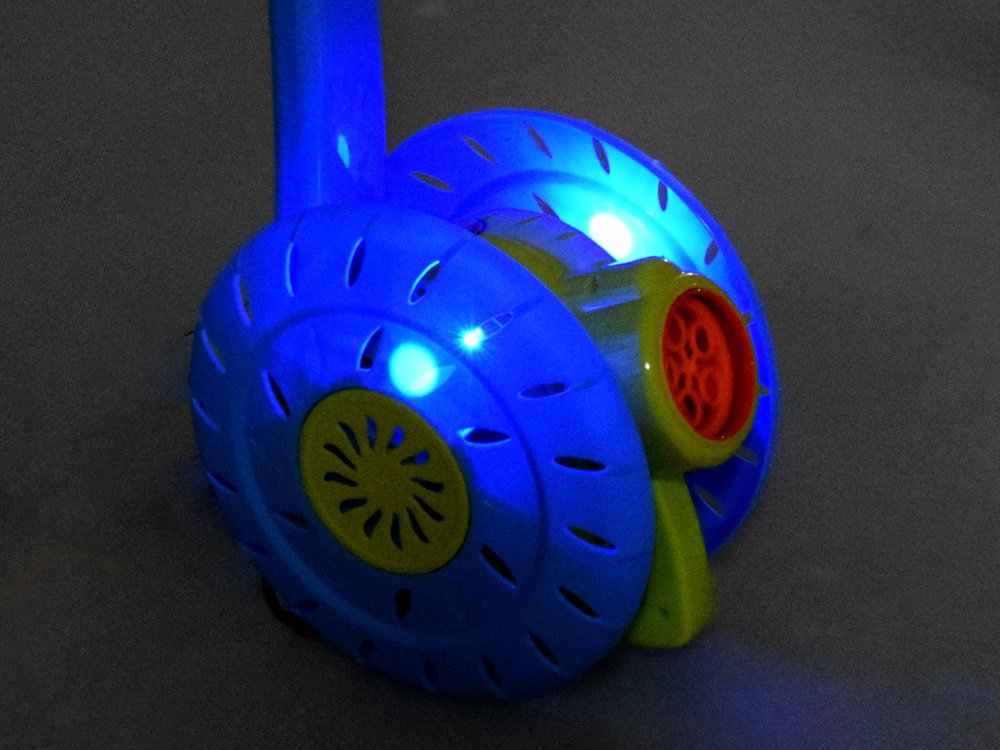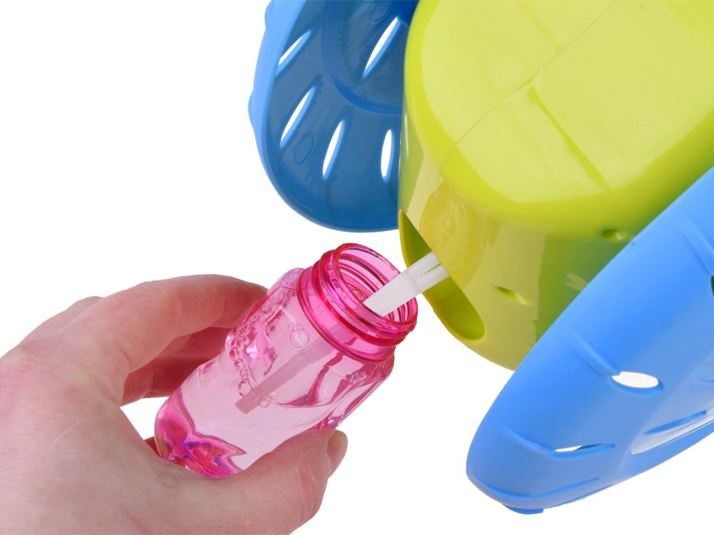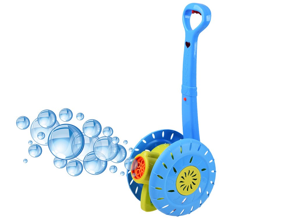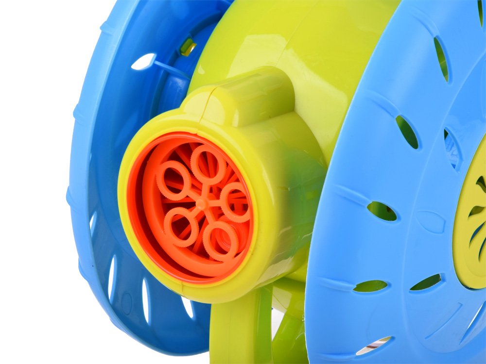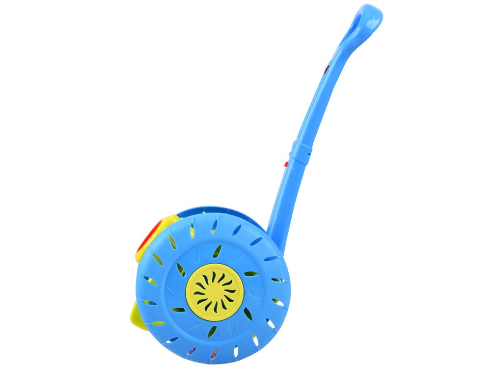 Mjehurići od sapunice omiljena su zabava male i velike djece. Senzacionalni stroj za izradu mjehurića od sapunice u obliku guralice zasigurno će razveseliti svako dijete. Igračka vam omogućuje puštanje šarenih mjehurića iz stroja. Sve što trebate učiniti je prišrafiti bočicu s tekućinom na dnu, uključiti gumb na ručki, aktivirati ventilator i okrenuti kotačić koji tijekom vrtnje ispušta čarobne dugine mjehuriće. Ali to nije sve, tijekom igranja možete čuti veselu melodiju i bljeskati šarena svjetla.
