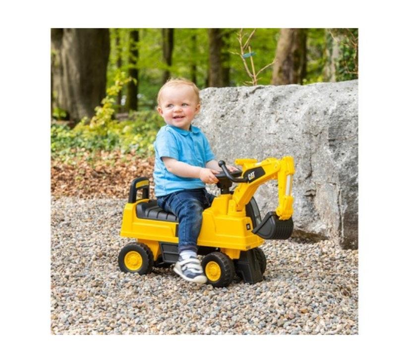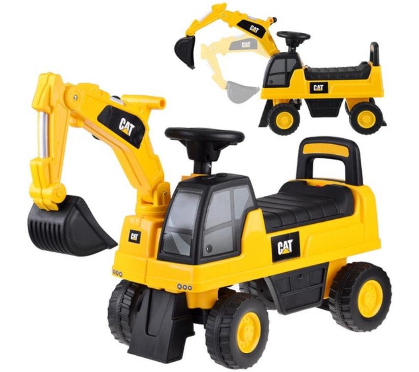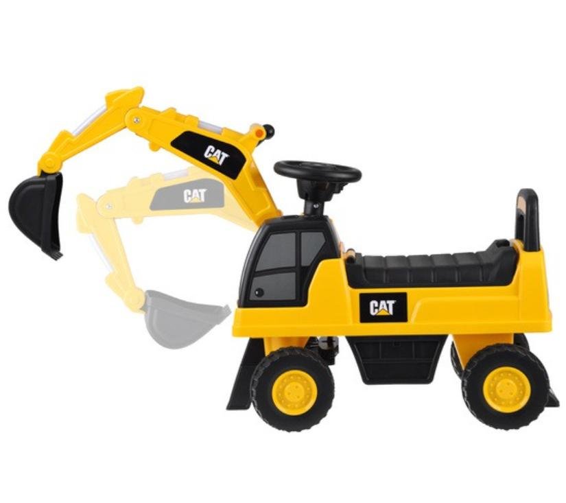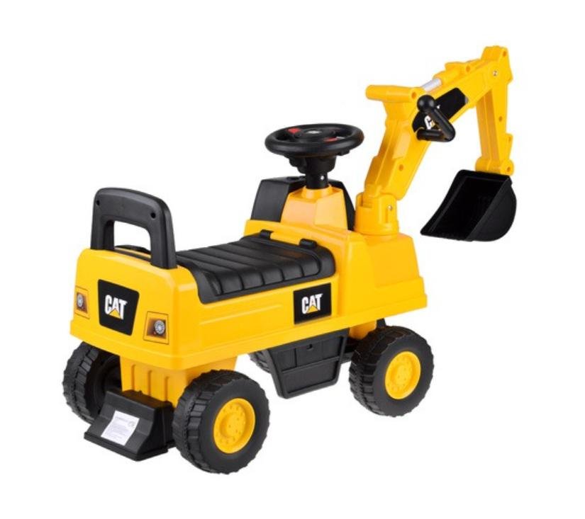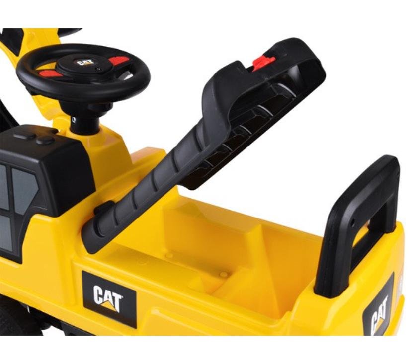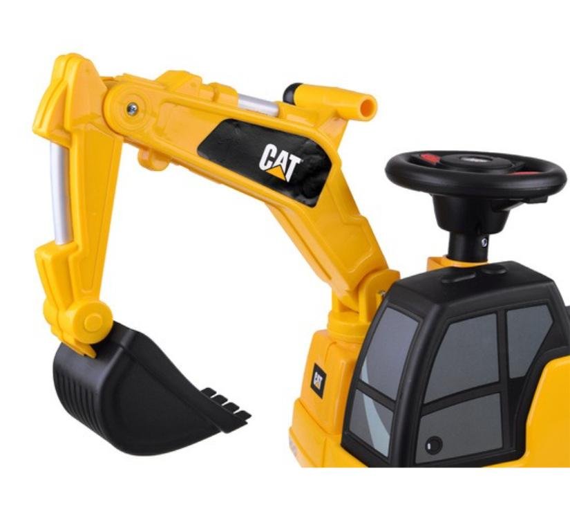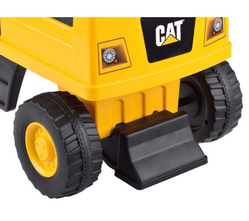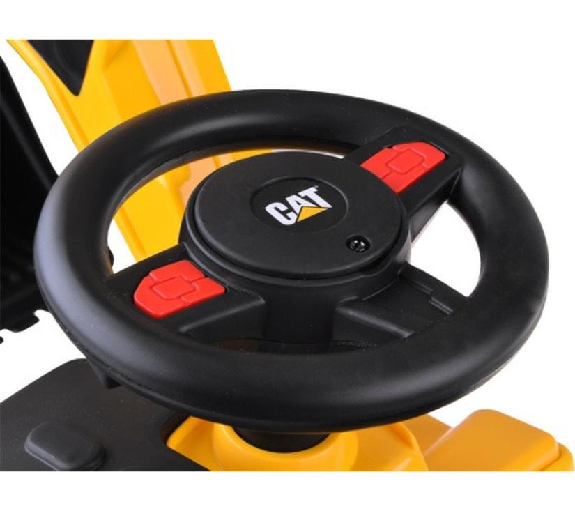 Licencirani CAT bager za vožnju stvoren je za djecu u dobi od 1 do 3 godine. Njegov atraktivan dizajn i veličine prilagođene djeci privlače pažnju najmlađih. Vrhunac bagera je pomična žlica koju djeca mogu lako pomicati gore, dolje i bočno. Na volanu se nalazi sirena zahvaljujući kojoj će mali vozač moći signalizirati o svom radu. Pretinac za pohranu ispod otvarajućeg sjedala omogućit će vam prijevoz potrebnog pribora na gradilište. Zahvaljujući protukliznim kotačima, vozilo dobro funkcionira i na drvenim podovima i na drugim površinama. Široki kotači osiguravaju glatku i sigurnu vožnju. Imajući na umu sigurnost djece, bager je opremljen stabilnim naslonom i sustavom protiv prevrtanja.