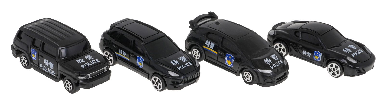 – policijski automobili cca. 7 cm x 2,5 cm x 3 cm,