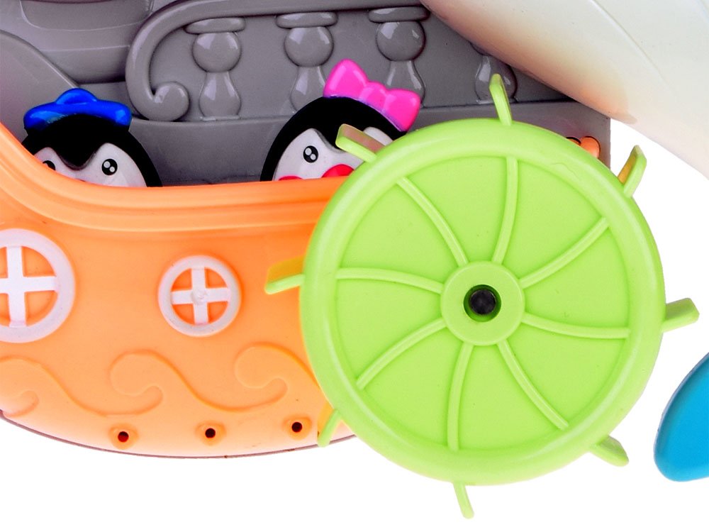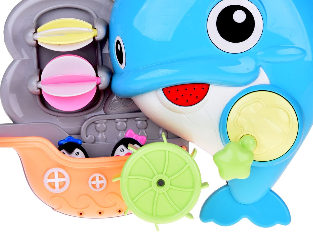 Šarena igračka za kupanje u obliku dupina savršena je za igranje u vodi. Dupin u atraktivnim bojama omogućit će vam smišljanje raznih igara. Igračka je u potpunosti izrađena od plastike i ima mnogo iznenađenja. Rupa u ustima za izlijevanje vode, kolutovi, čamac s pričvršćenim sićušnim pingvinima. Igračka se lako može pričvrstiti na glatku površinu pomoću vakuumskih čašica uključenih u set.