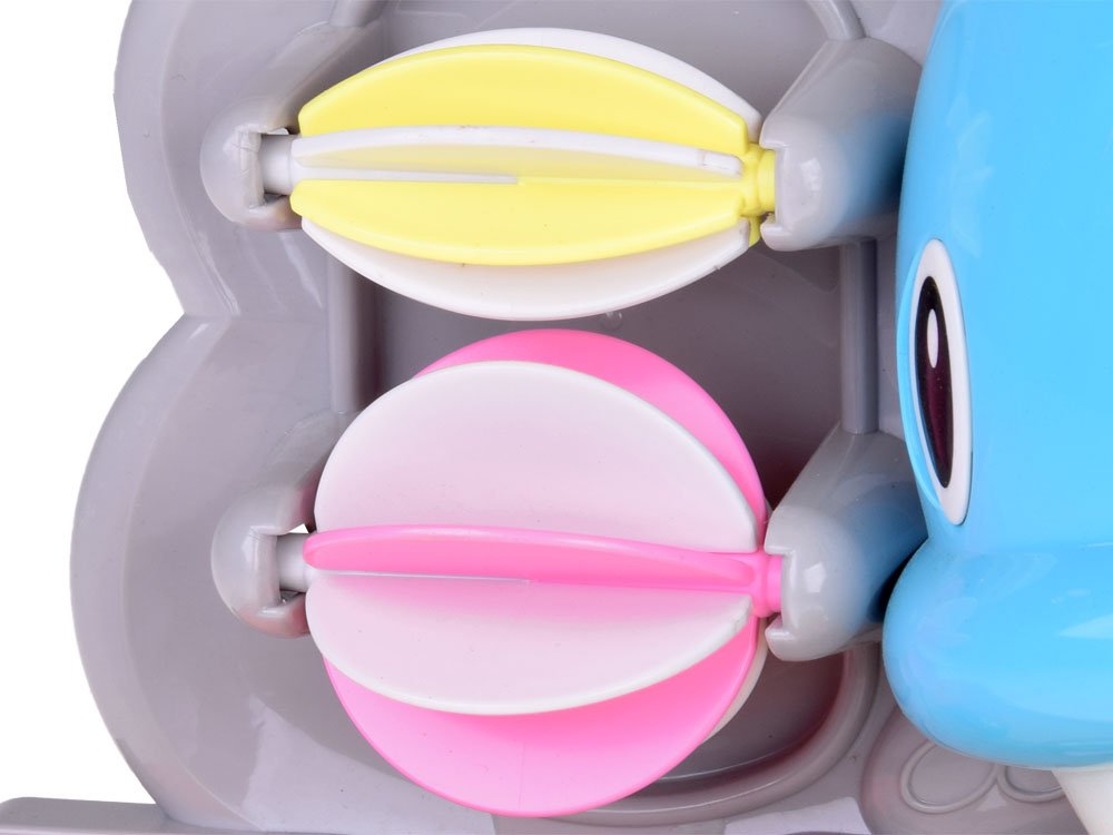 – pomoću bež posude za sipanje vode koja se nalazi na njegovoj glavi, voda ulivena u nju pokreće cirkulaciju u igrački i time počinje zabava