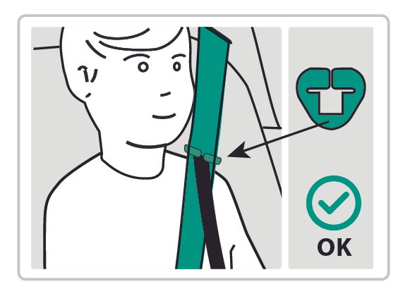 Sjedalo je opremljeno dodatnom vodilicom za rameni pojas koja osigurava pravilno postavljanje sigurnosnog pojasa. Vodilica drži rameni pojas u ispravnom položaju prilikom korištenja sjedala.
