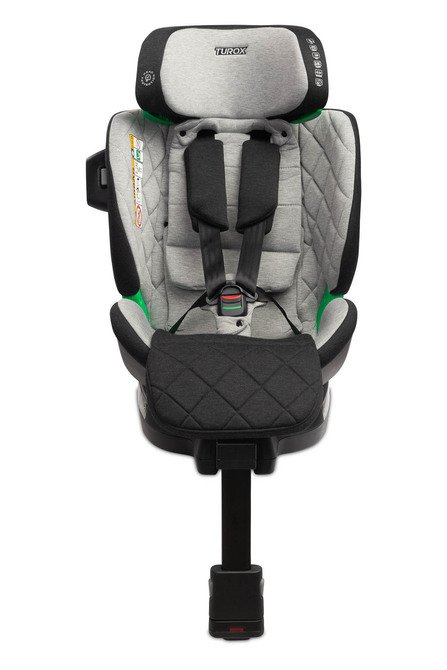 Caretero Turox je autosjedalica za djecu od 40 cm do 150 cm visine s punom rotacijom i stabilizirajućom nogicom. Ovo sjedalo je odobreno i-Size. Turox osigurava najviši standard sigurnosti i udobnosti za vašu bebu tijekom putovanja. Sjedalica je namijenjena djeci od prvih mjeseci života do prestanka potrebe za sjedalicom, odnosno kada dostignu 150 cm visine. Montaža sjedalice je brza i jednostavna, odgovara svim vozilima opremljenim ISOFIX konektorima. Sjedalo se može okretati 360 stupnjeva, što olakšava postavljanje vašeg djeteta u sjedalo. Najveću udobnost za najmanje putnike pruža udoban umetak s podesivim naslonom za glavu. Presvlaka je izrađena od poliesterske tkanine s dodatkom bambusa – ima visoka antibakterijska svojstva i omogućuje prirodnu cirkulaciju zraka. Zahvaljujućiosmostupanjskom podešavanju naslona za glavui setu umetaka, sjedalo se može savršeno prilagoditi djetetovoj visini, osiguravajući odgovarajuću potporu za vrat i područje glave. Sjedalo ima 5 stupnjeva nagiba i u položaju okrenutom prema naprijed i prema natrag. Kopča sigurnosnih pojaseva u 5 točaka opremljena je zvučnim signalom koji će se oglasiti kada se otkopčaju. Dodatna prednost je bočna SIP (Side Impact Protection) podloga koja se nalazi na bočnoj stijenci sjedala i jamči povećanu sigurnost u slučaju sudara na cesti.
