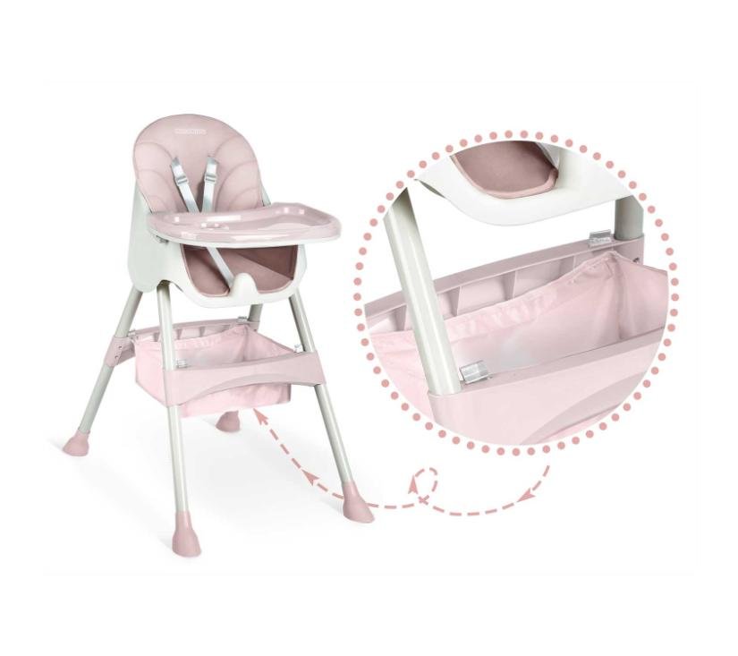 Visoka stolica omogućuje slobodno podešavanje udaljenosti pladnja od djeteta. Također se mogu potpuno rastaviti u bilo kojem trenutku.