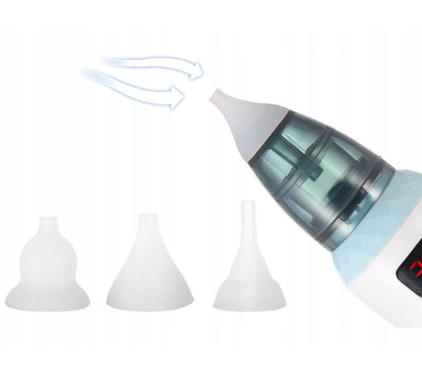Aspirator ima postavku snage usisavanja u pet stupnjeva . To omogućuje prilagodbu aspiratora gustoći katara. Komplet uključuje tri silikonska nastavka koji ne iritiraju sluznicu nosa. Nastavci se mogu mijenjati prema dobi djeteta.