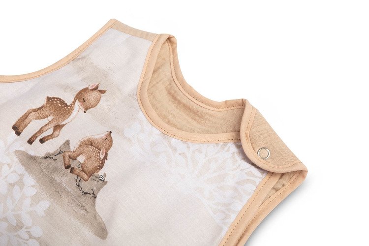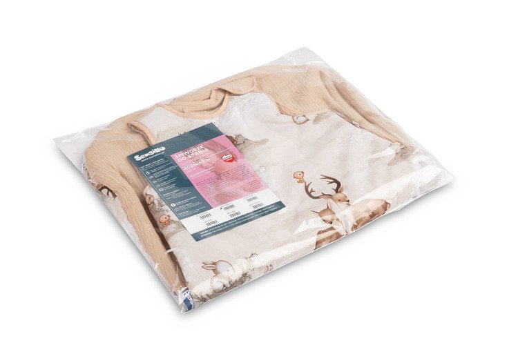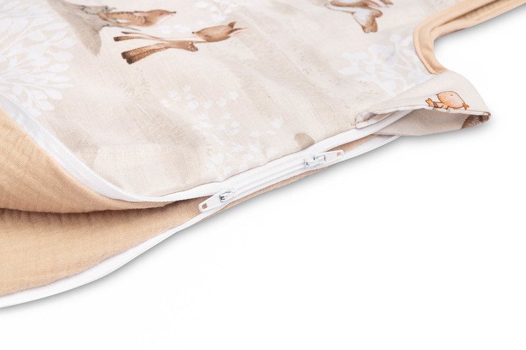 Vreća za spavanje veličine M poslužit će malo starijoj djeci (9-18 mjeseci) pružajući im toplinu i sigurnost. Sašivena je od mekanog pamuka punjenog podstavom. Unutrašnjost i stražnji dio vreće za spavanje izrađeni su od muslin pamuka. Proizvod ne sadrži tvrde elemente koji bi mogli iritirati dječju kožu. Opremljena je dvostranim patentnim zatvaračem koji se vodi oko vreće za spavanje, što vam omogućuje promjenu pelene bez vađenja djeteta iz vreće za spavanje.