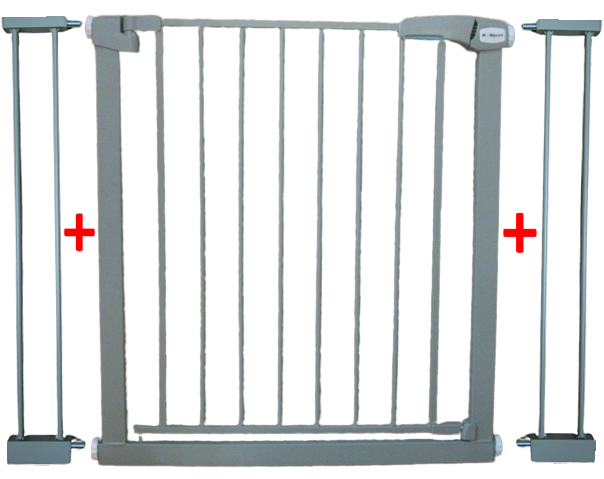 Komplet uključuje ogradu s vratima i bravom, 2 nastavka, 2 metalna nastavka i 4 vijka s plastičnim maticama i silikonskim čepovima.