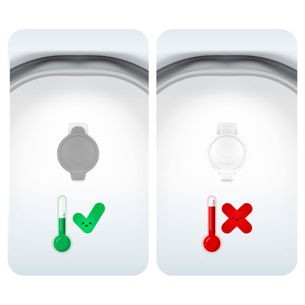 Kapica mijenja boju iz sive u bijelu ako temperatura vode prijeđe 38°C.