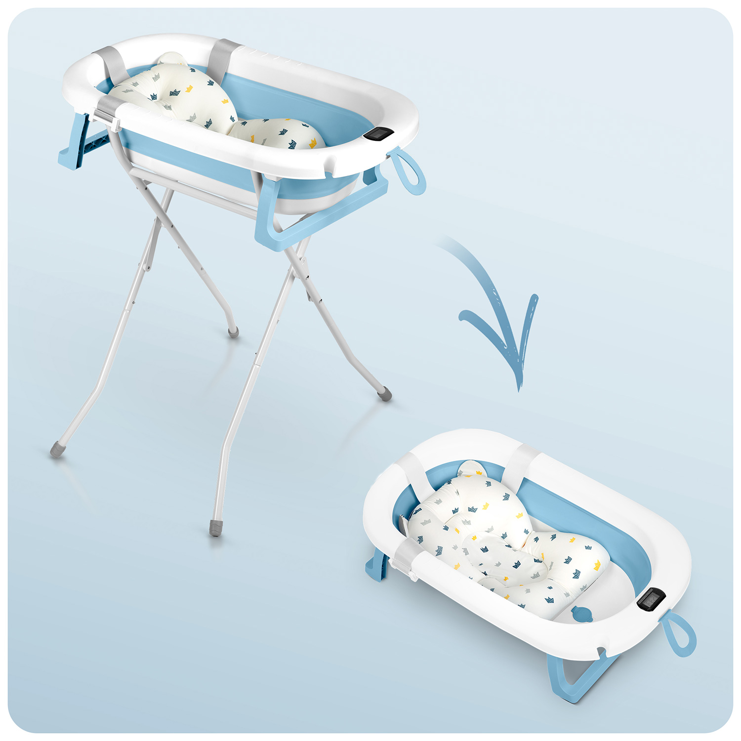 Zahvaljujući sklopivim nogama, kada se neće preklopiti tijekom kupanja. Protuklizne nožice osiguravaju sigurnost na skliskim površinama.
