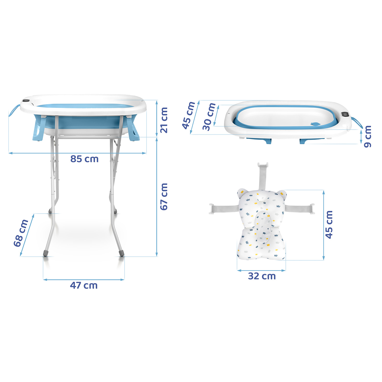 Kada dolazi s mekanim, konturiranim uložkom koji nježno podupire glavu i leđa vaše bebe. Tri čvrste ručke sigurno ga pričvršćuju za rubove kade – bez klizanja, bez stresa. Uložak je izrađen od brzosušećeg materijala, tako da ga nakon kupanja možete izvaditi i isprazniti u tren oka. Maksimalna udobnost i higijena za svaki trenutak proveden u vodi!