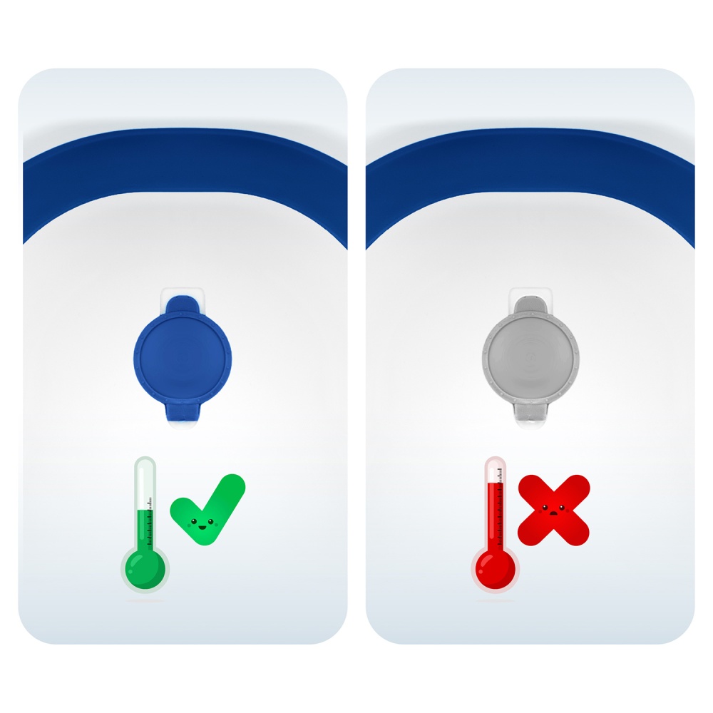 Kapica mijenja boju iz plave u bijelu ako temperatura vode prijeđe 38°C.