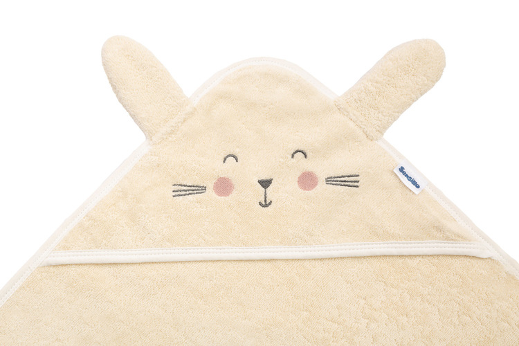 Ručnik za kupanje izrađen je od 100% nježnog pamuka. Mekan je, ugodan na dodir i vrlo upija. Zahvaljujući solidnim dimenzijama od 90×90 cm i prostranoj kapuljači, možete bez problema čvrsto zamotati bebu nakon kupanja.
