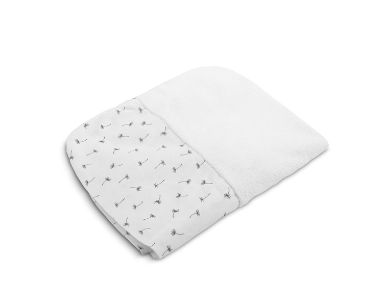 Savršeno upija vodu nakon kupanja bebe. Izrađena od mekanog frotira i tiskanog pamuka. Plahta ima elastičnu traku zahvaljujući kojoj se prilagođava stolu za prematanje 50×70 cm i ne klizi.
