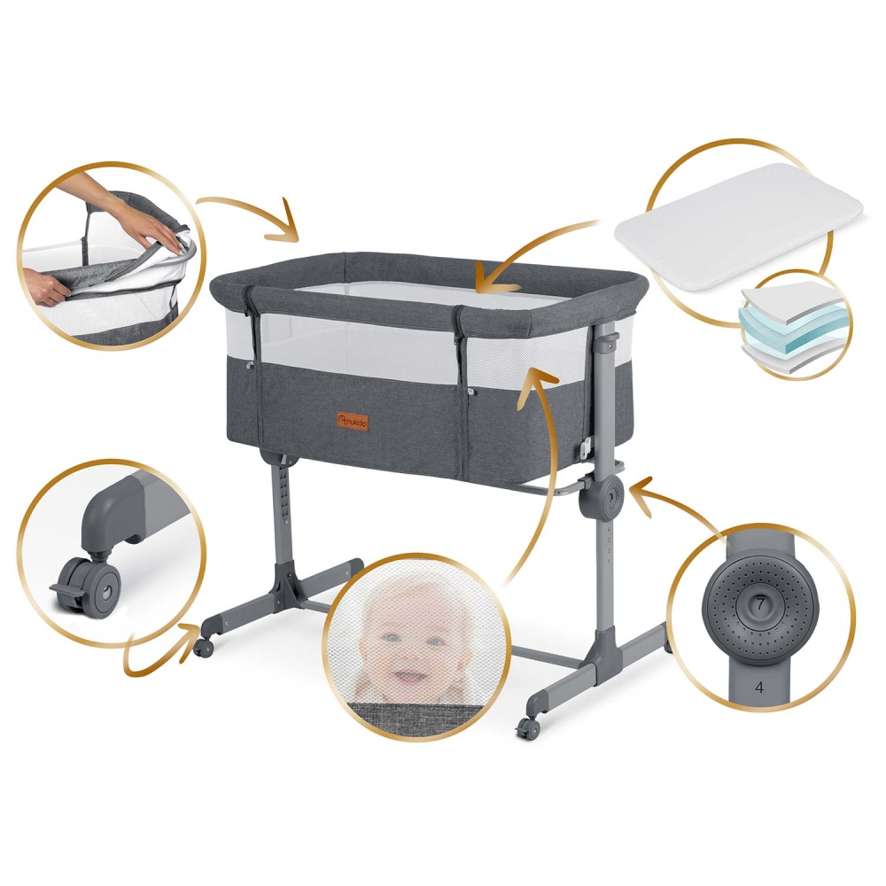 Bočni krevetić provjerene marke NUKIDO pruža siguran prostor za spavanje bebe. Beba je blizu roditelja, što olakšava povezivanje i pruža osjećaj sigurnosti.
