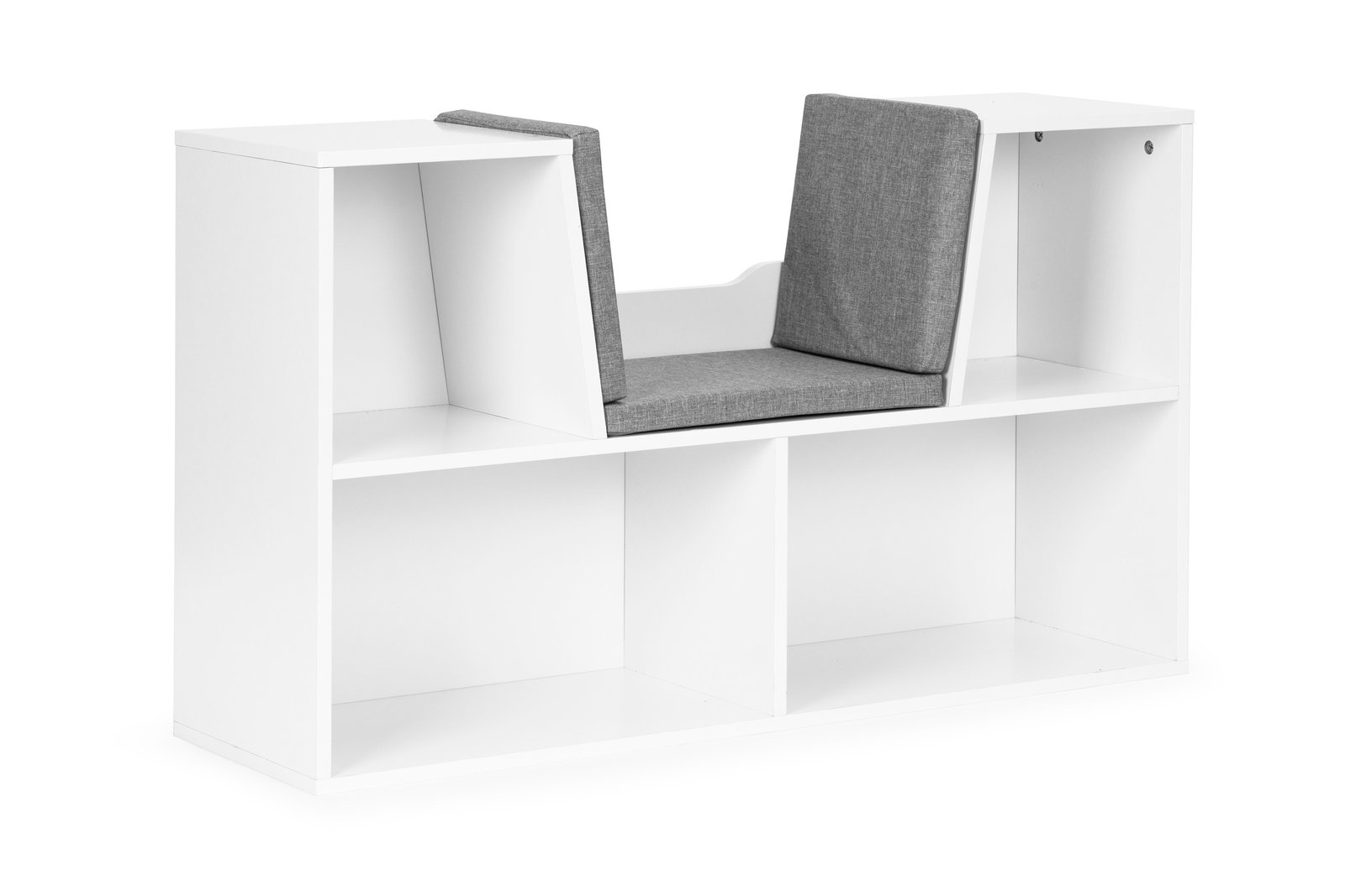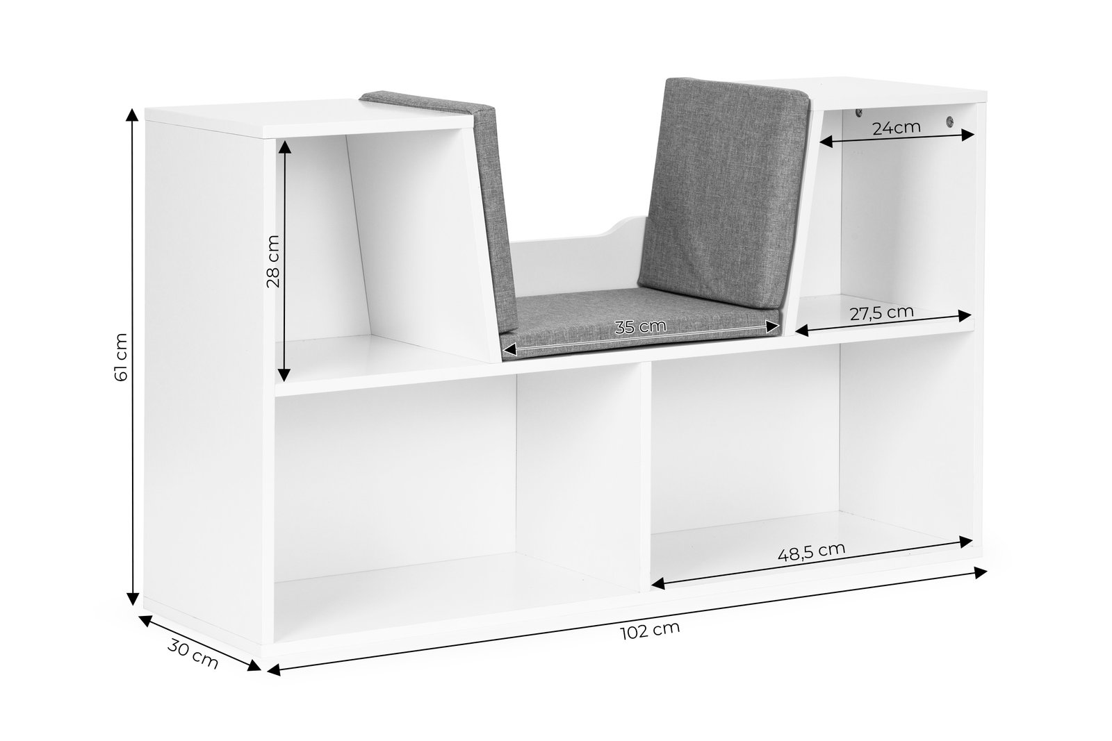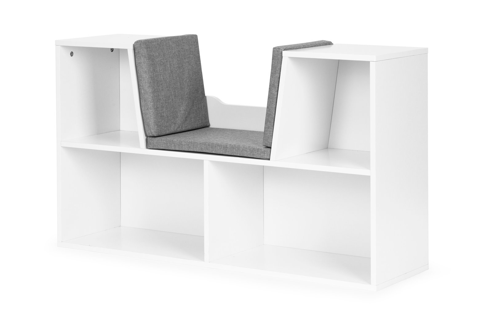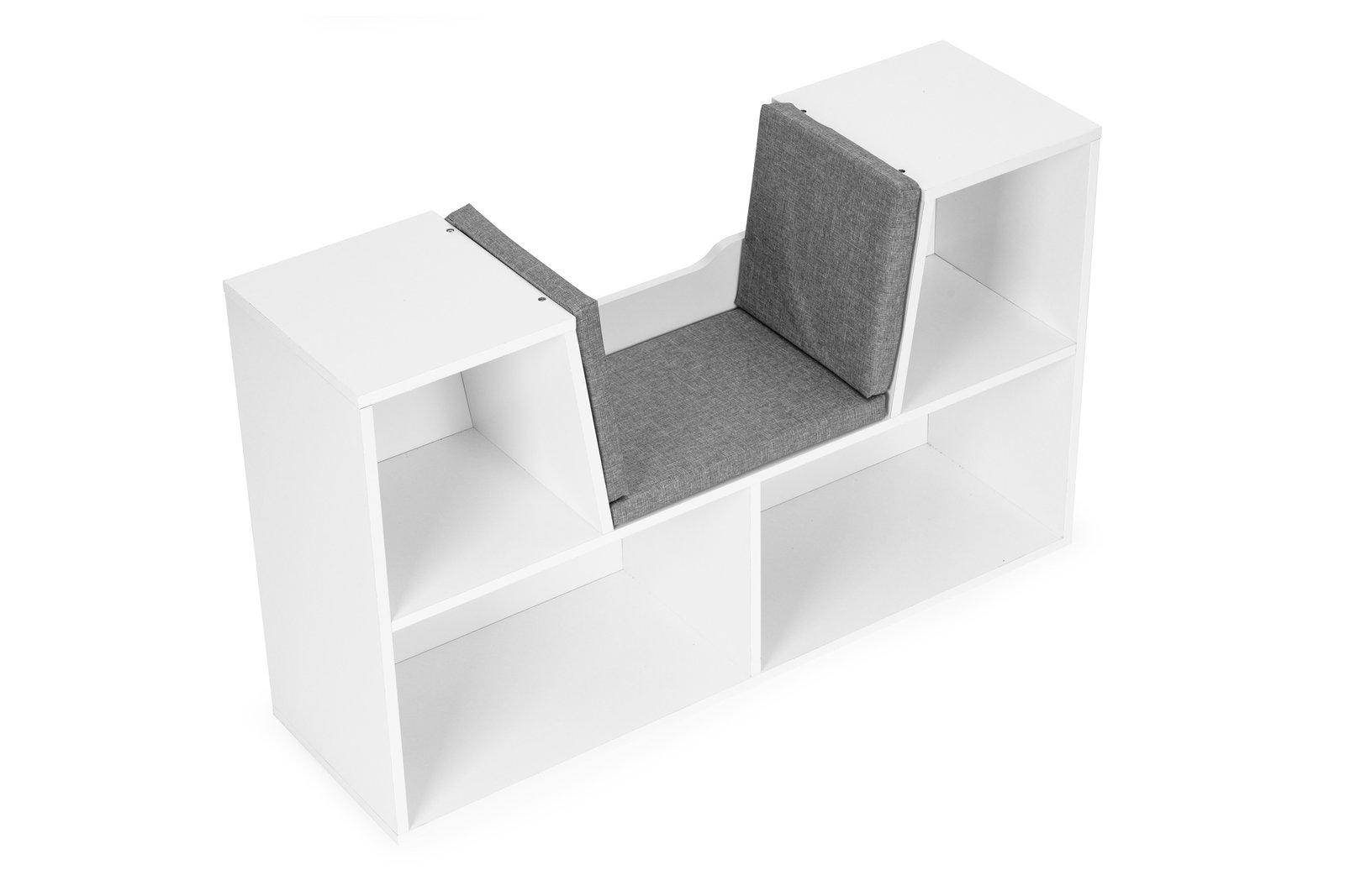 Namještaj je izrađen od izdržljivog iverala (1,5 cm) i obložen furnirom otpornim na oštećenja. U četiri prostrana odjeljka mogu se smjestiti predmeti različitih oblika i veličina, a posebno sjedalo s mekim jastucima (koji se mogu izvaditi i prati) vašem će djetetu pružiti udobno mjesto za sjedenje, čitanje, pa čak i igru.