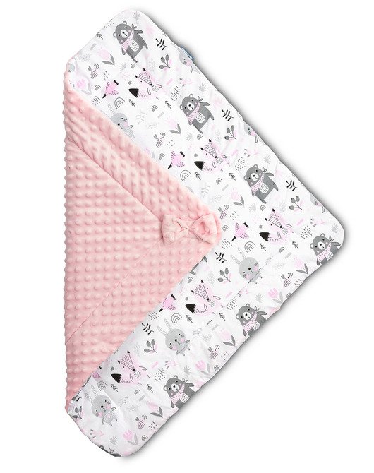 Minky dvostrana dječji poplun stvorena je za novorođenčad i dojenčad. Omogućuje vam udobno držanje bebe tijekom hranjenja i spavanja. Nakon rasklapanja može se uspješno koristiti kao poplun za krevetić ili dječja kolica. Može se koristiti i kao podloga za igru. Izrađena od kvalitetne tkanine, kopča se na čičak.