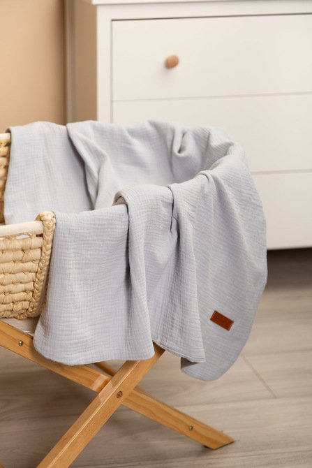 Pokrivač od muslina izrađen je od visokokvalitetne 100% pamučne tkanine. Izrađen je od dva sloja pamuka, što ga čini laganim i prozračnim. Dobro će poslužiti u šetnjama za toplih sunčanih dana, može poslužiti kao deblje povijanje, za svakodnevnu igru ili kao navlaka tijekom hranjenja. Nježni pamuk osigurava pravilnu cirkulaciju zraka, a također ne senzibilizira niti iritira bebinu kožu. Dodatna prednost deke je prekrasna tekstura tkanine.