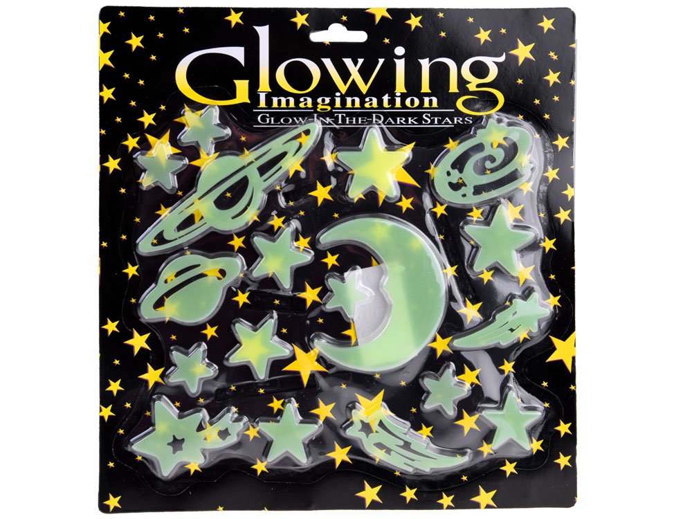 Naljepnice svijetle noću, što daje jedinstveni efekt, a također olakšavaju zaspati, dajući blagi sjaj. Posebno su korisni kada se dijete boji mraka, ali ne može zaspati s upaljenim noćnim svjetlom.