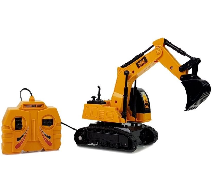 The excavator is made in colours typical for construction vehicles. The vehicle has rubber caterpillar wheels which can cope with various surfaces on a real construction site – not only those completely smooth. The set comes with a controller which is connected to the car with a 110 cm long cable. It enables even more fun, by means of which we can control the excavator. One of the joysticks is responsible for moving forward and backward with a right turn. The other one is responsible for raising and lowering the arm of the excavator.