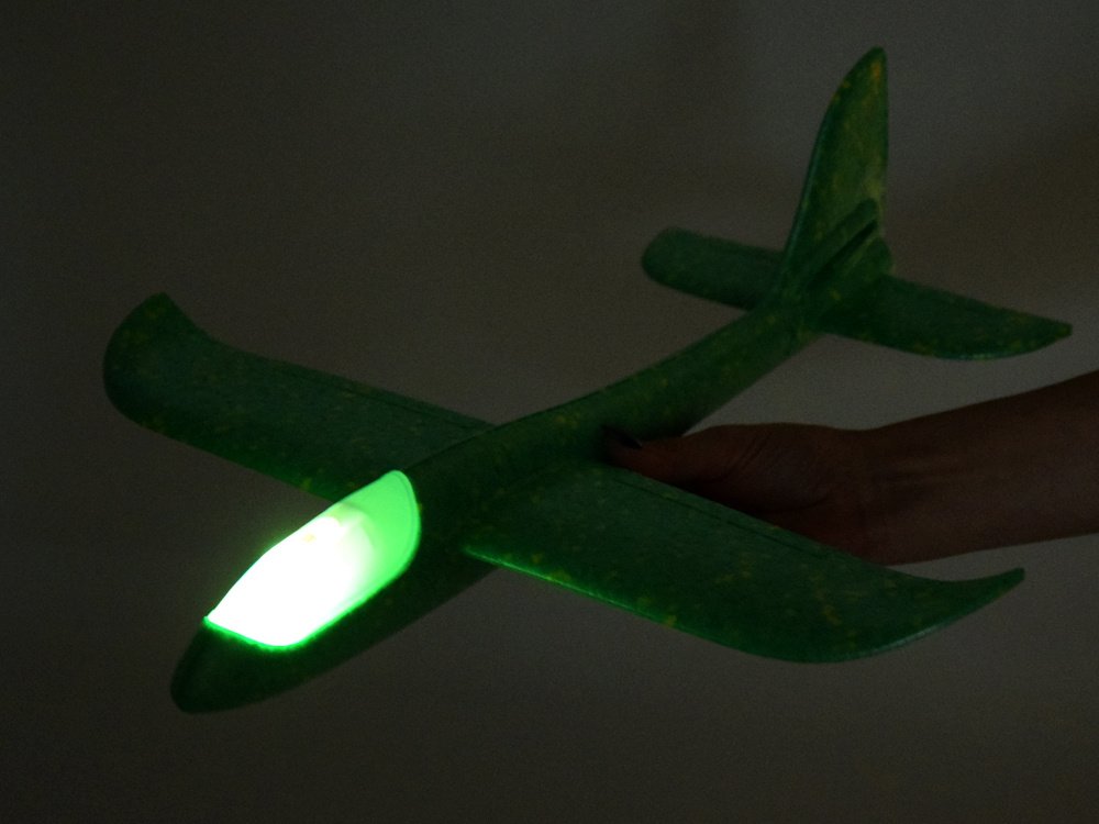 Avion od stiropora sa LED rasvjetom je klasična igračka namijenjena i maloj i velikoj djeci. Igračka je u potpunosti izrađena od stiropora, lagana je, aerodinamičnog je oblika koji osigurava spektakularno klizanje i potpuno je sigurna, nema opasnosti od oštećenja okoline.