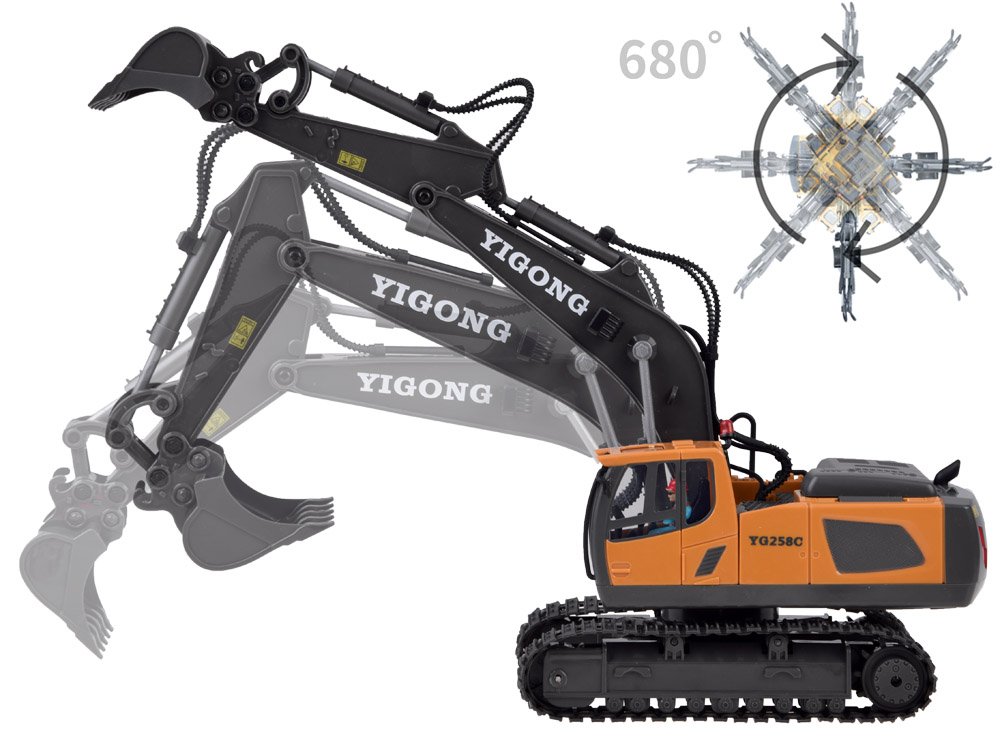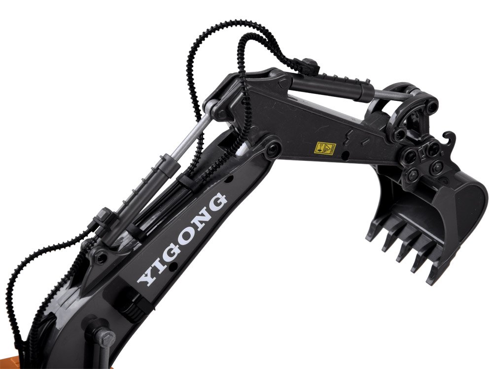 Plastična igračka s pokretnom žlicom i gumenim gusjenicama. Igračka je obogaćena zvučnim efektima: rad motora, svjetlosni efekt. Pilot je odgovoran za rad kante gore i dolje. Bager ide naprijed, nazad, skreće desno, lijevo. Igra s takvom igračkom omogućit će svakom malom djetetu izvrsnu zabavu.