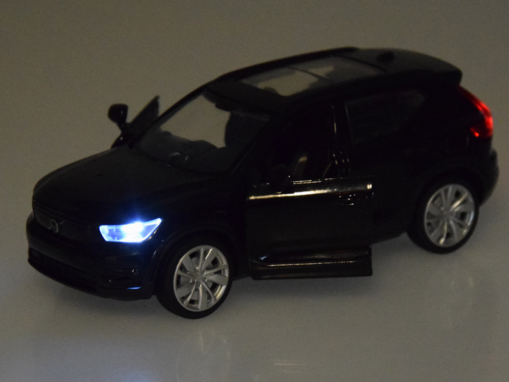 Nakon otvaranja vrata Volva XC40, čut ćete zvuk otvaranja automobila ključem . Pritiskom vozila na tlo aktivira se zvuk paljenja i rada motora. Zvučne efekte prate svjetla na prednjem i stražnjem dijelu automobila. Cijela karoserija vozila izrađena je od metala, kotači su gumeni, a šasija je od plastike.